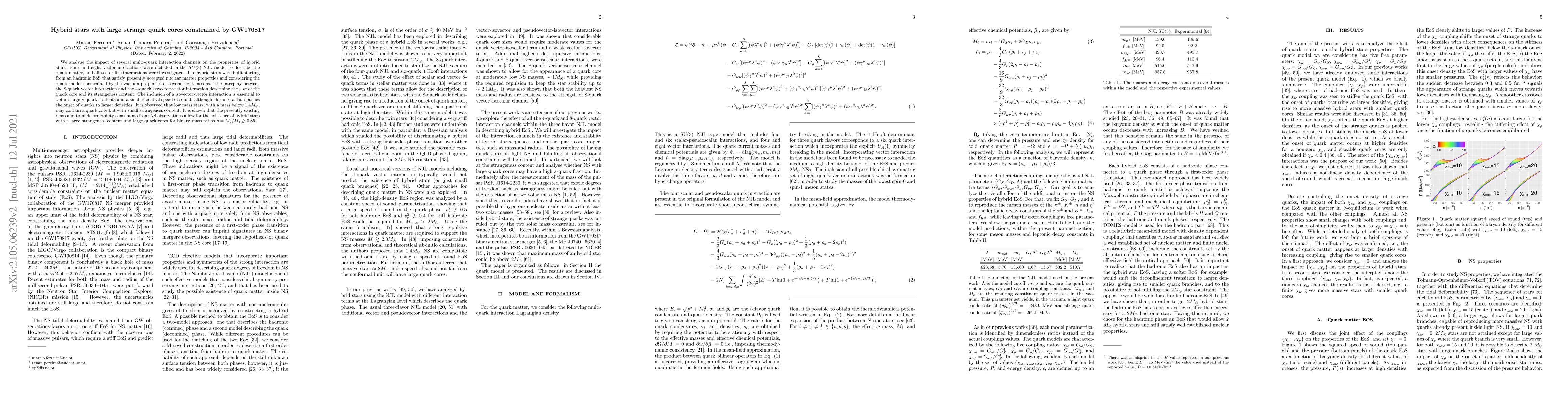 This paper investigates hybrid stars using the $SU(3)$ NJL model with vector interactions, finding that the interplay between 8-quark and 4-quark interactions determines the size and strangeness content of the quark core. It concludes that hybrid stars with large quark cores and significant strangeness are possible given current observational constraints.