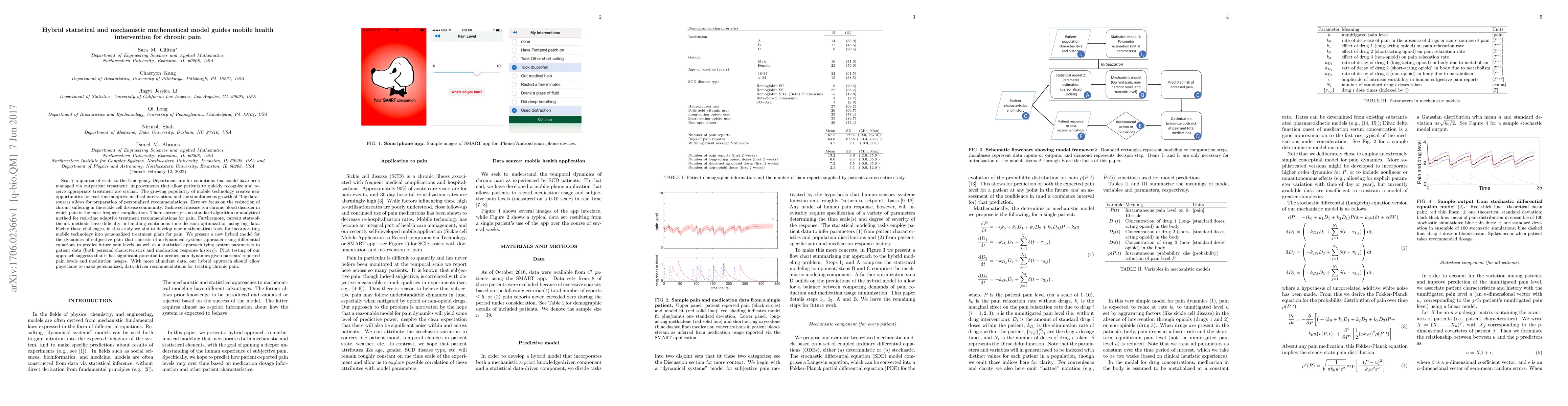 This study develops a hybrid statistical and mechanistic mathematical model to guide mobile health interventions for chronic pain in sickle cell disease patients, combining dynamical systems and statistical methods to predict pain dynamics and provide personalized treatment recommendations. Pilot results indicate the model's potential for real-time adaptive treatment based on patient-reported data.