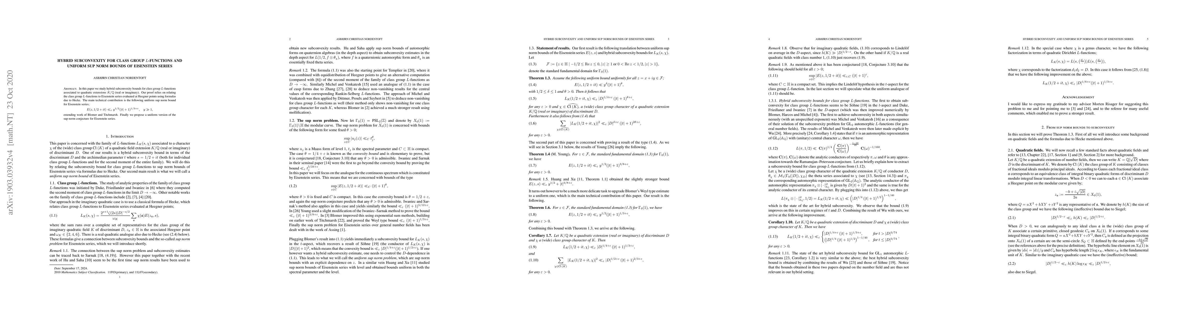 This paper establishes a hybrid subconvexity bound for class group $L$-functions tied to quadratic extensions and uses Hecke's formulas to link these to Eisenstein series. The key technical result is a uniform sup norm bound for Eisenstein series, extending prior work and proposing a uniform sup norm conjecture.