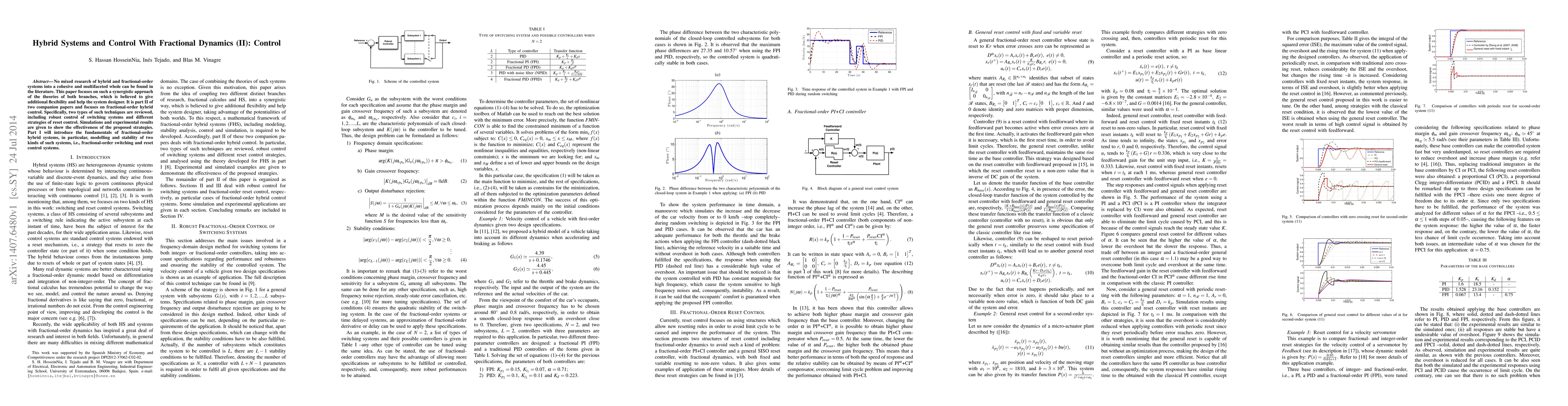 This paper presents a hybrid approach combining fractional-order dynamics with control techniques, focusing on robust switching systems and reset control strategies, with promising simulation and experimental results.