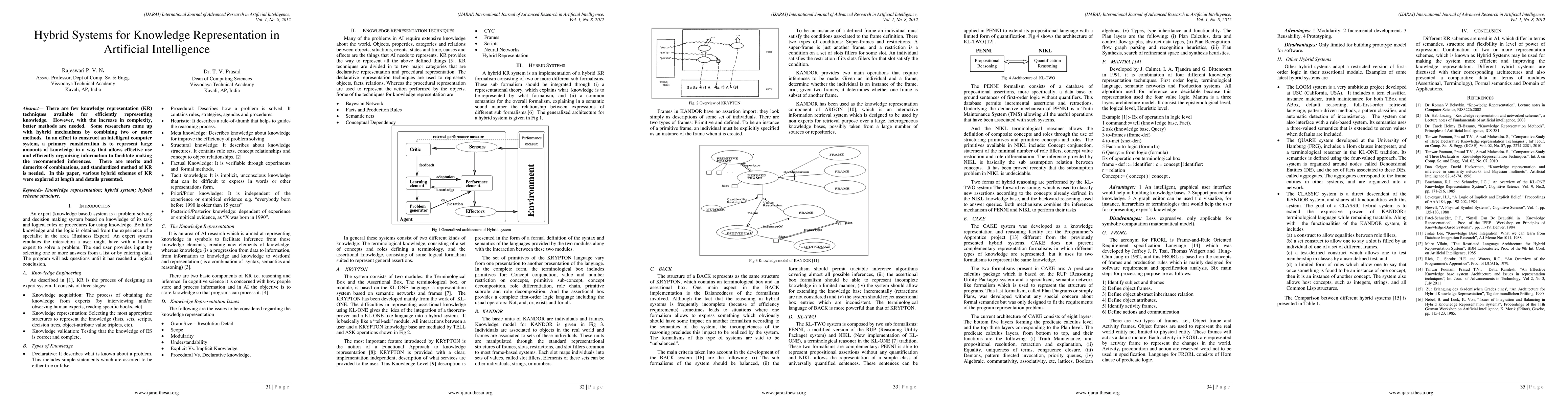 This paper explores hybrid knowledge representation (KR) systems in AI, combining multiple methods to handle complex knowledge. It details various hybrid schemes, acknowledging their pros and cons, and underscores the need for a standardized KR method.