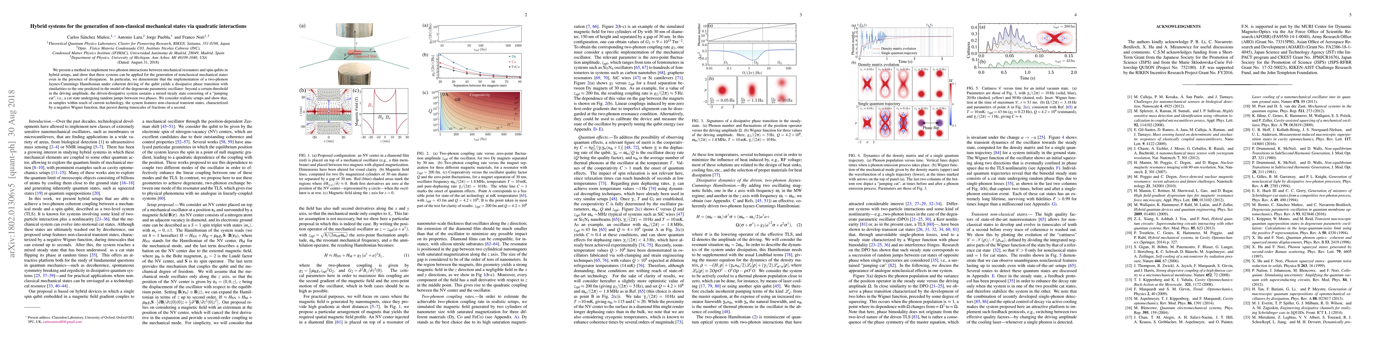 Researchers create a hybrid system that generates non-classical mechanical states using quadratic interactions between mechanical resonators and spin qubits. They successfully demonstrate the presence of non-classical transient states with negative Wigner functions in realistic setups.