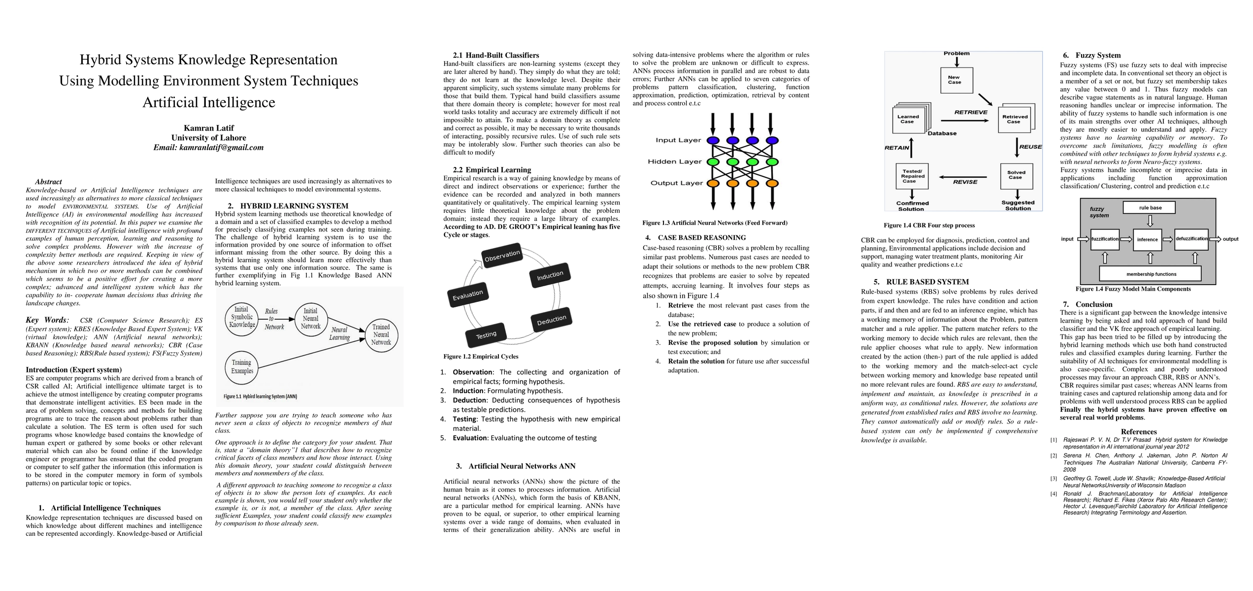 Knowledge-based or Artificial Intelligence techniques are used increasingly as alternatives to more classical techniques to model ENVIRONMENTAL SYSTEMS. Use of Artificial Intelligence (AI) in environmental modelling has increased with recognition of its potential. In this paper we examine the DIFFERENT TECHNIQUES of Artificial intelligence with profound examples of human perception, learning and reasoning to solve complex problems. However with the increase of complexity better methods are required. Keeping in view of the above some researchers introduced the idea of hybrid mechanism in which two or more methods can be combined which seems to be a positive effort for creating a more complex; advanced and intelligent system which has the capability to in- cooperate human decisions thus driving the landscape changes.