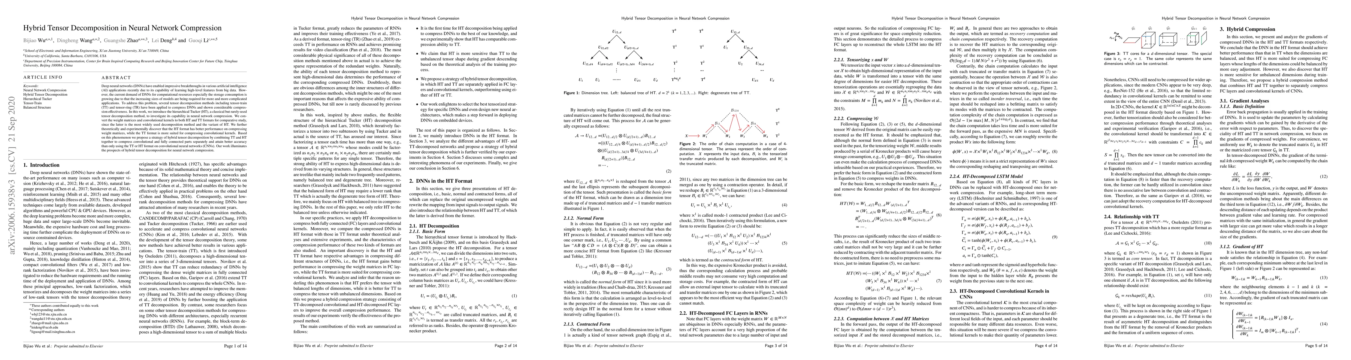 This paper explores hybrid tensor decomposition methods for compressing deep neural networks, comparing hierarchical Tucker (HT) and tensor-train (TT) formats. It finds that HT is more effective for compressing weight matrices, while TT is better for convolutional kernels, leading to a proposed hybrid approach that achieves superior compression results for convolutional neural networks.