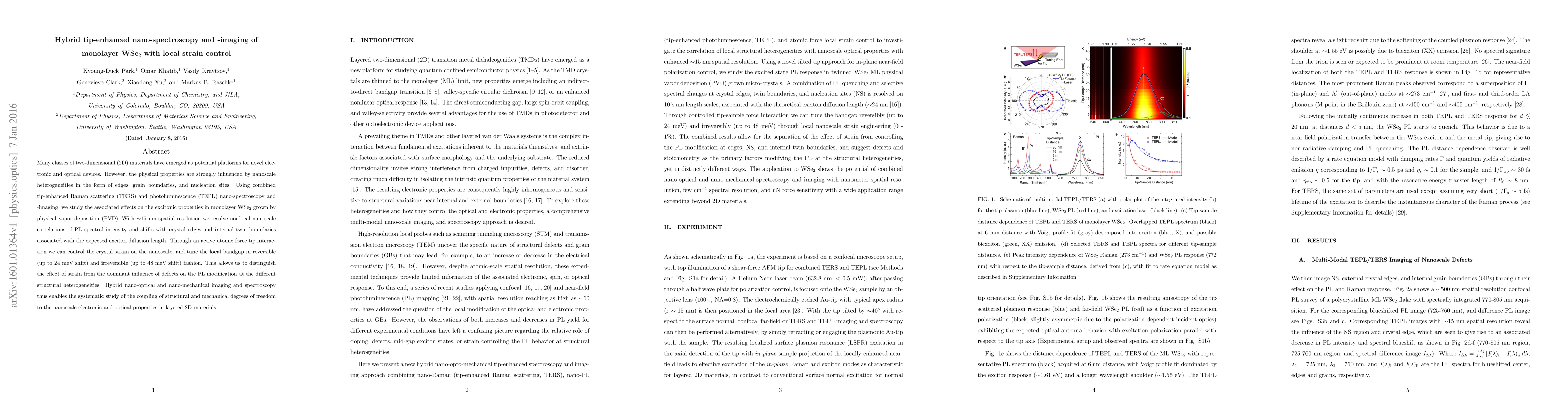 This paper employs hybrid tip-enhanced nano-spectroscopy to study the excitonic properties of monolayer WSe2, revealing how nanoscale structural defects affect photoluminescence. The study also demonstrates the ability to control and tune the local bandgap via nanoscale strain, distinguishing strain effects from those of defects.