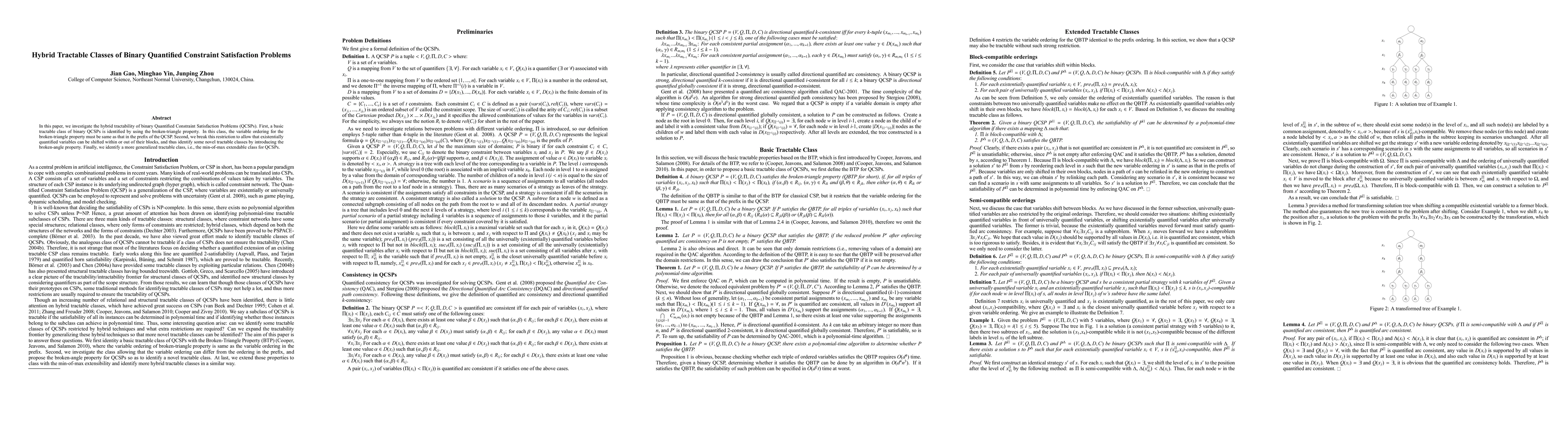This paper explores hybrid tractability in binary Quantified Constraint Satisfaction Problems (QCSPs), identifying a basic tractable class using the broken-triangle property and extending it with the broken-angle property. It also introduces a generalized min-of-max extendable class for broader tractability.