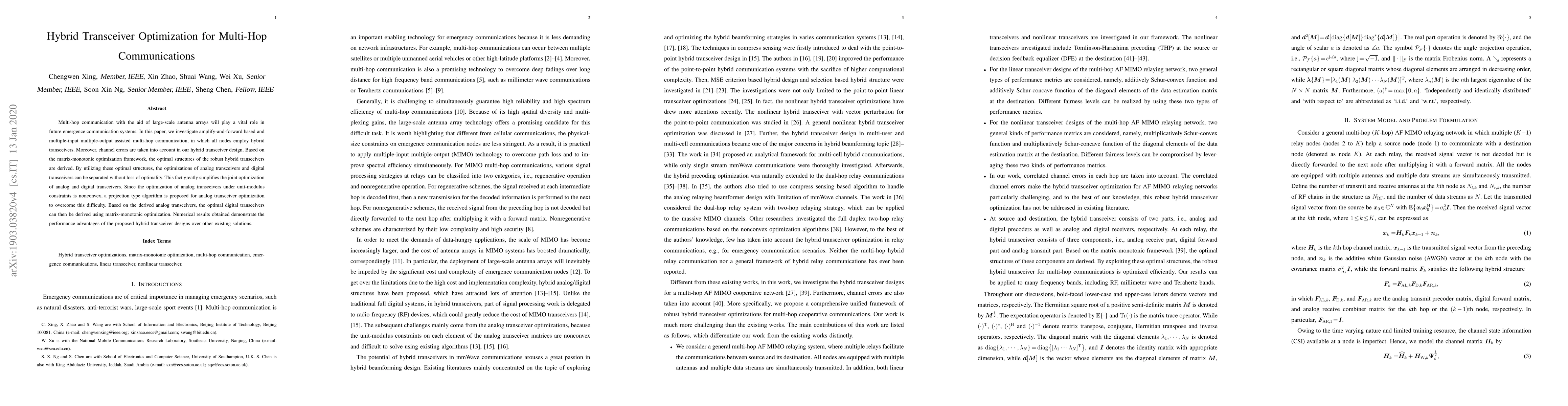 Researchers designed hybrid transceivers for multi-hop communications that optimize both analog and digital components separately using matrix-monotonic optimization and a projection algorithm. The results show performance advantages over existing solutions.