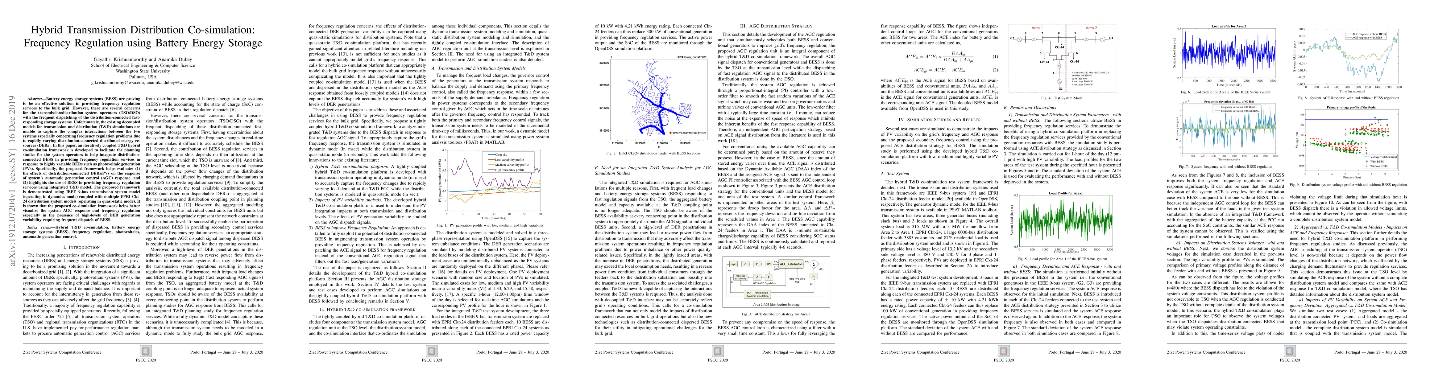 This paper develops an iteratively coupled hybrid co-simulation framework for transmission and distribution systems to better integrate battery energy storage systems (BESS) for frequency regulation amidst rapidly varying distributed energy resources (DERs). The framework evaluates the impact of DERs on automatic generation control and demonstrates its effectiveness using IEEE 9-bus and EPRI Ckt-24 models.