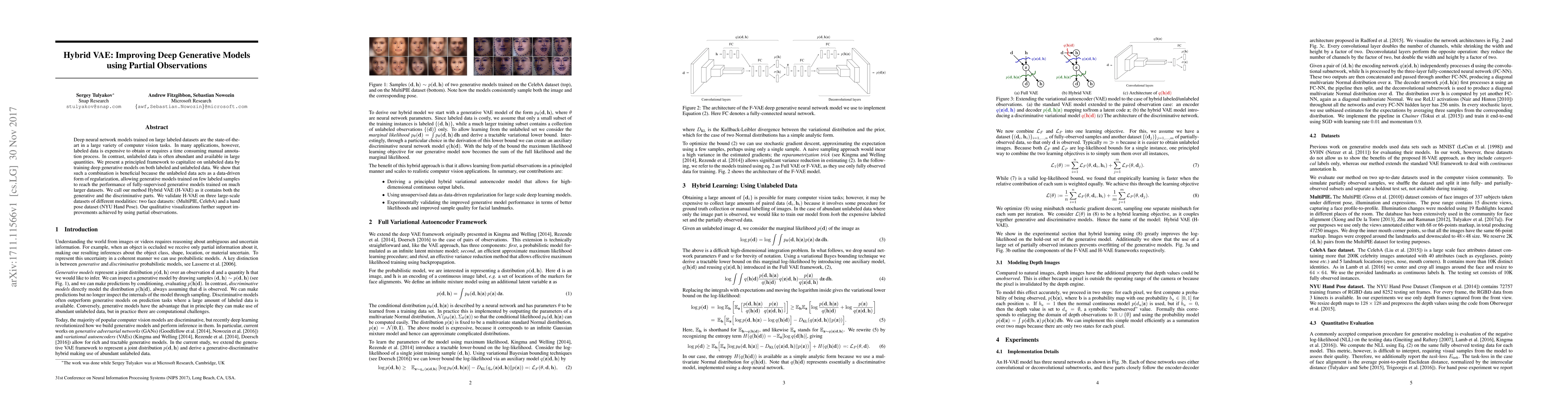 The paper introduces Hybrid VAE (H-VAE), a method that leverages unlabeled data to enhance deep generative models' performance. By combining labeled and unlabeled data, H-VAE uses unlabeled data as regularization, enabling models to match the performance of those trained on larger labeled datasets, as demonstrated on face and hand pose datasets.