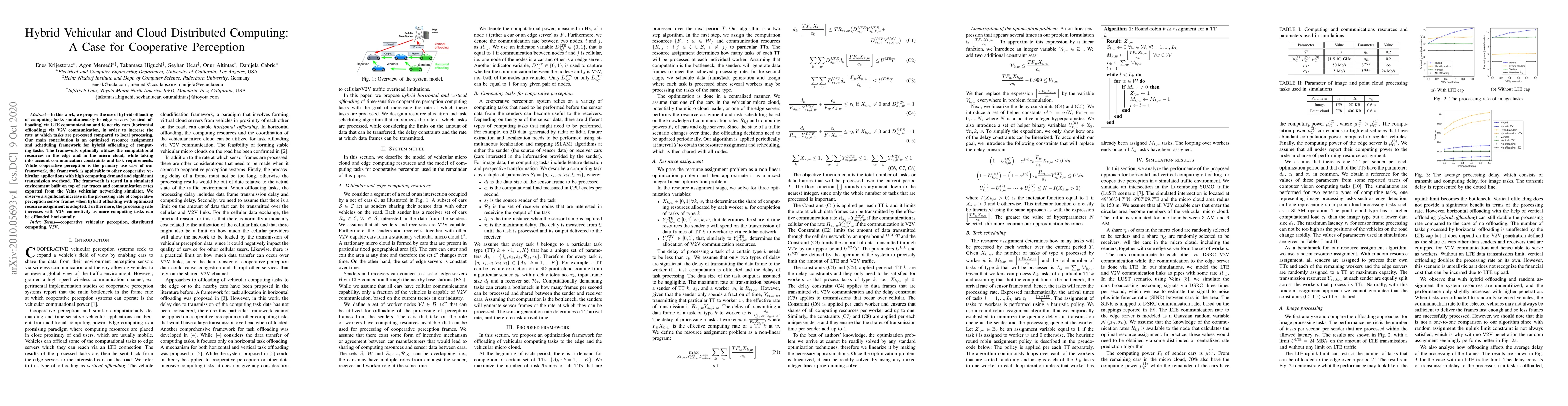 This paper proposes a hybrid offloading framework that leverages both edge servers and nearby cars for distributed computing to enhance task processing rates. The framework optimizes resource allocation and scheduling, significantly improving the processing of cooperative perception tasks in vehicular networks.