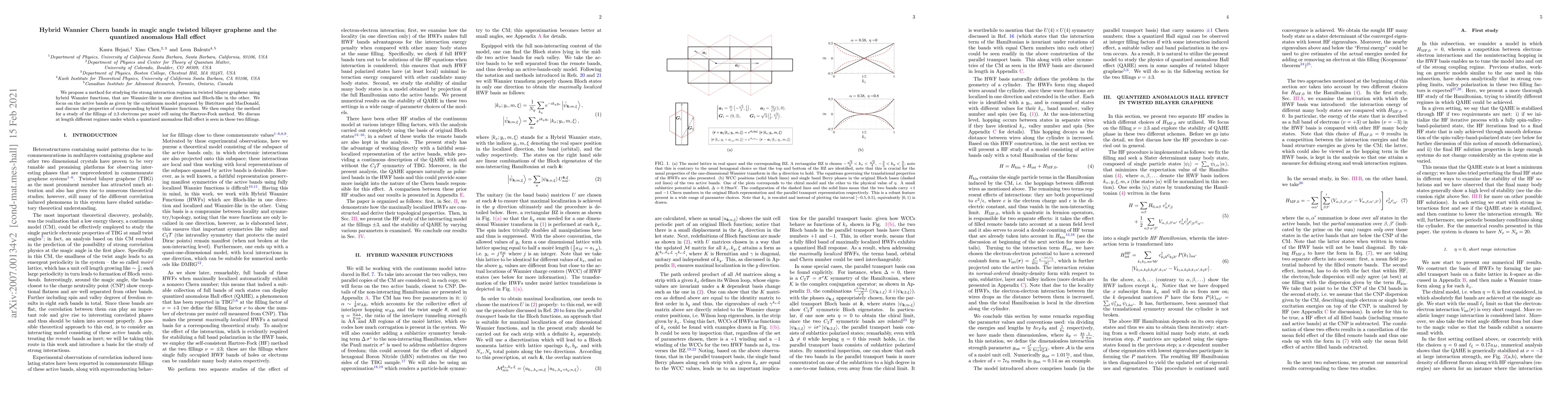This paper proposes a hybrid Wannier function approach to study strong interaction regimes in magic angle twisted bilayer graphene, focusing on active bands and their properties. It explores the quantized anomalous Hall effect under fillings of ±3 electrons per moiré cell, revealing different regimes where this phenomenon is observed.