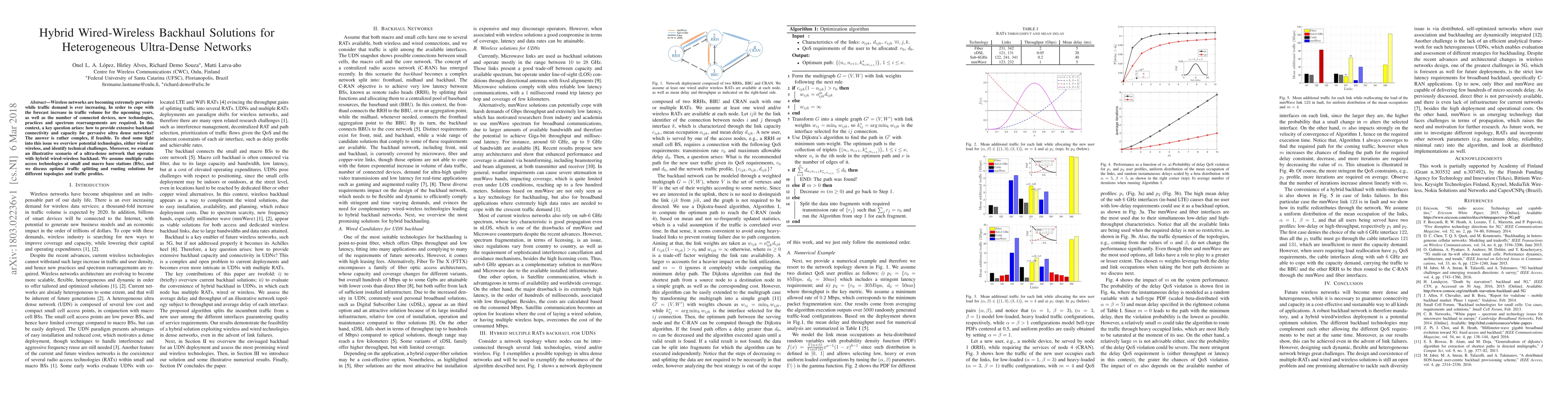 This paper explores hybrid wired-wireless backhaul solutions for ultra-dense networks, evaluating potential technologies and technical challenges. It proposes optimal traffic splitting and routing strategies for diverse network topologies and traffic profiles in a hybrid backhaul scenario.