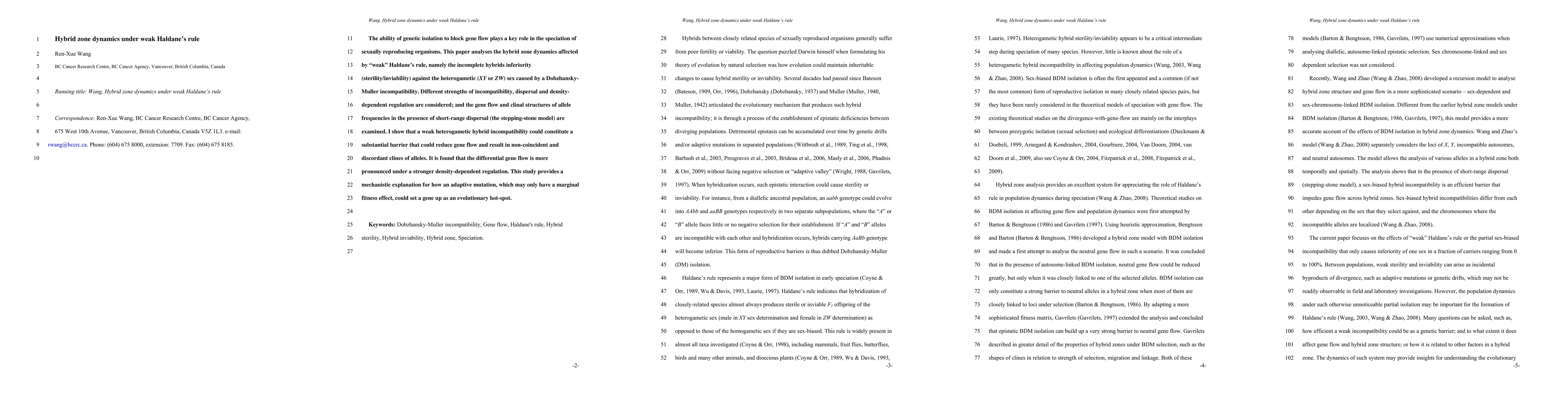 A study explores how a weak version of Haldane's rule can create a barrier to gene flow, leading to non-coincident clines of alleles and the emergence of evolutionary hot-spots. The research finds that stronger density-dependent regulation exacerbates this effect.