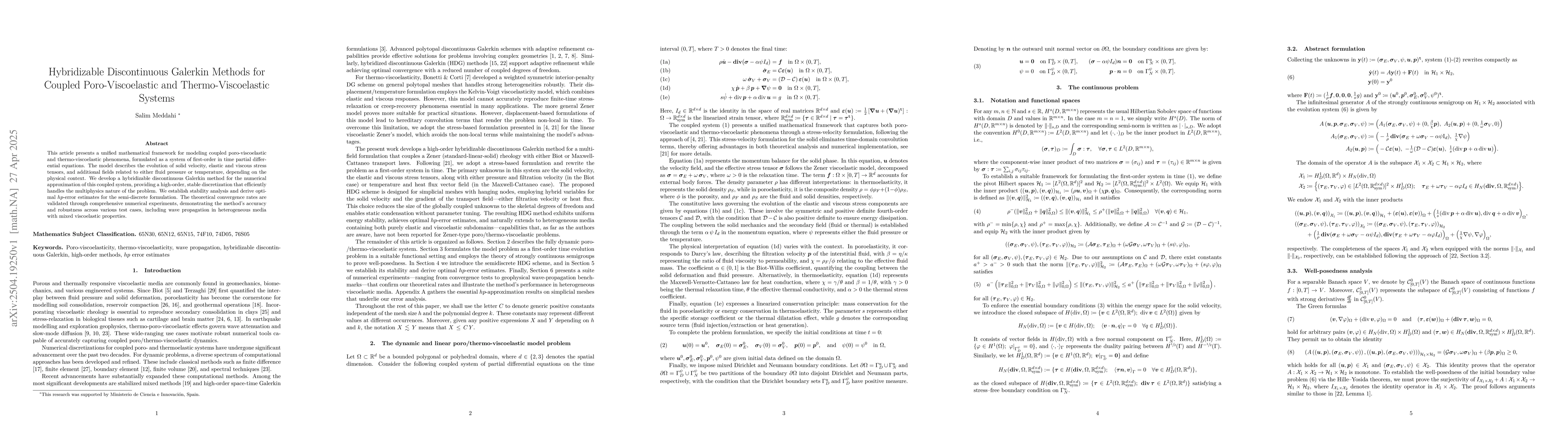 The development of a hybridizable discontinuous Galerkin method for coupled poro-viscoelastic and thermo-viscoelastic systems, along with stability analysis and error estimates.