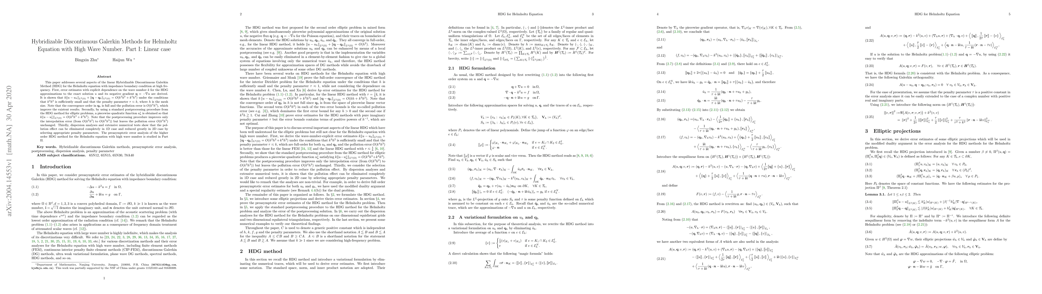 This paper develops the linear Hybridizable Discontinuous Galerkin Method (HDG) for the high-frequency Helmholtz equation, deriving error estimates that show improved convergence and reduced pollution error. Postprocessing further enhances the interpolation accuracy while maintaining the pollution error.