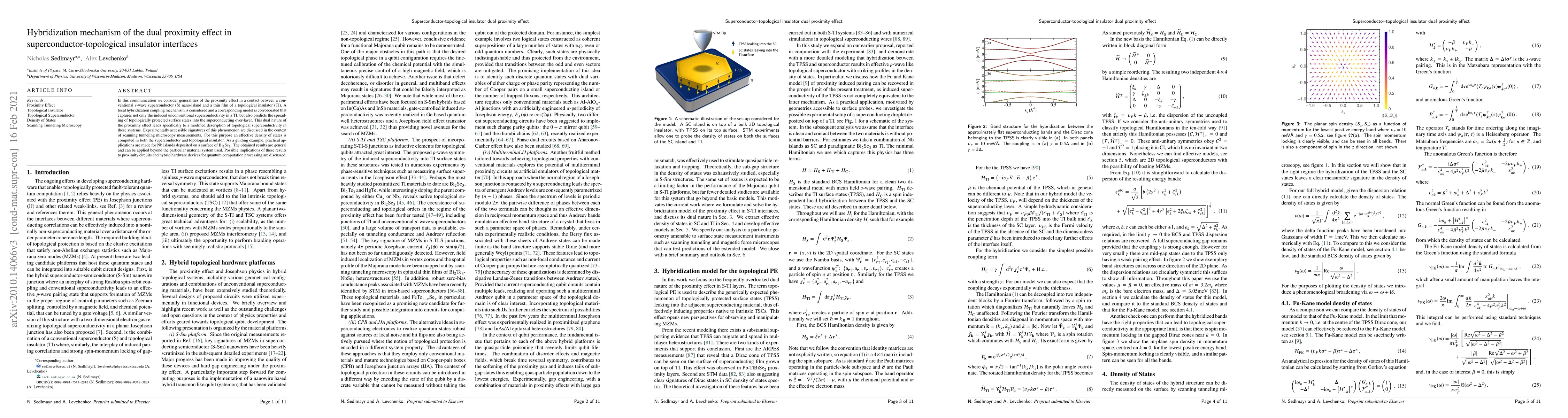 This paper explores the hybridization mechanism behind the dual proximity effect at superconductor-topological insulator interfaces, revealing induced unconventional superconductivity and the extension of topologically protected surface states into the superconductor. The findings suggest potential applications in quantum computing and hybrid devices.