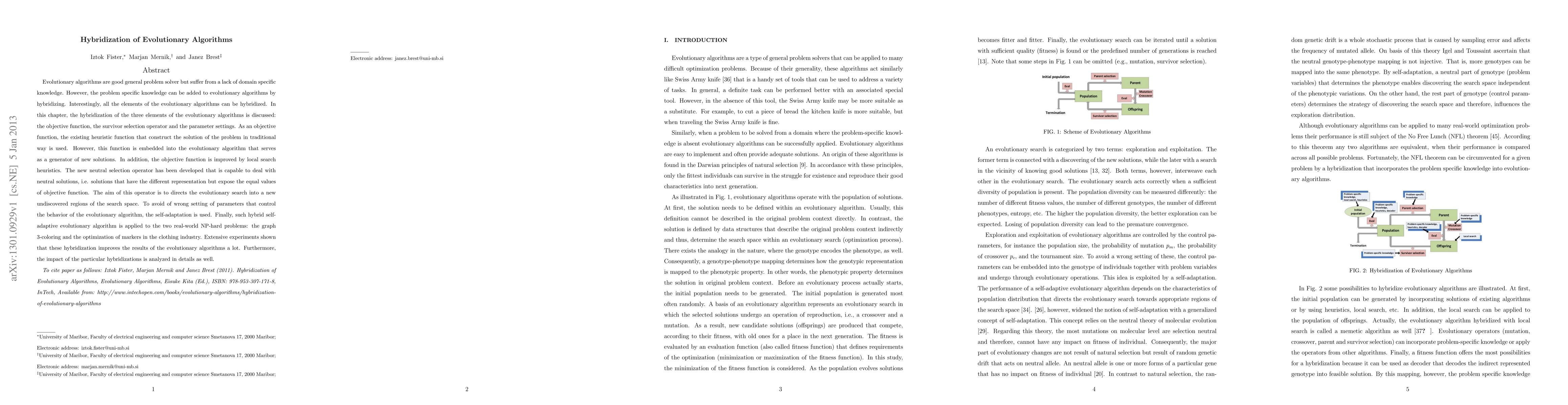 This paper explores the hybridization of evolutionary algorithms by integrating domain-specific knowledge into three key elements: the objective function, survivor selection operator, and parameter settings. The results show significant improvements in solving NP-hard problems like graph 3-coloring and marker optimization in the clothing industry.