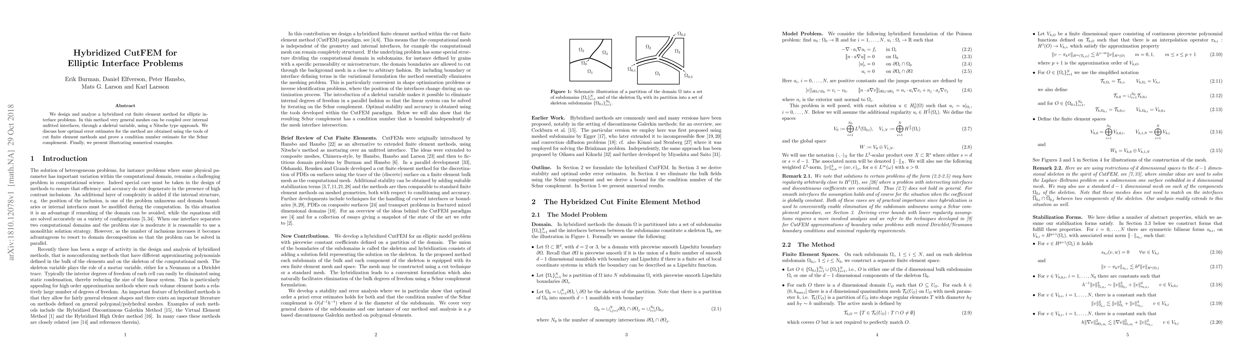 We design and analyze a hybridized cut finite element method for elliptic interface problems. In this method very general meshes can be coupled over internal unfitted interfaces, through a skeletal variable, using a Nitsche type approach. We discuss how optimal error estimates for the method are obtained using the tools of cut finite element methods and prove a condition number estimate for the Schur complement. Finally, we present illustrating numerical examples.