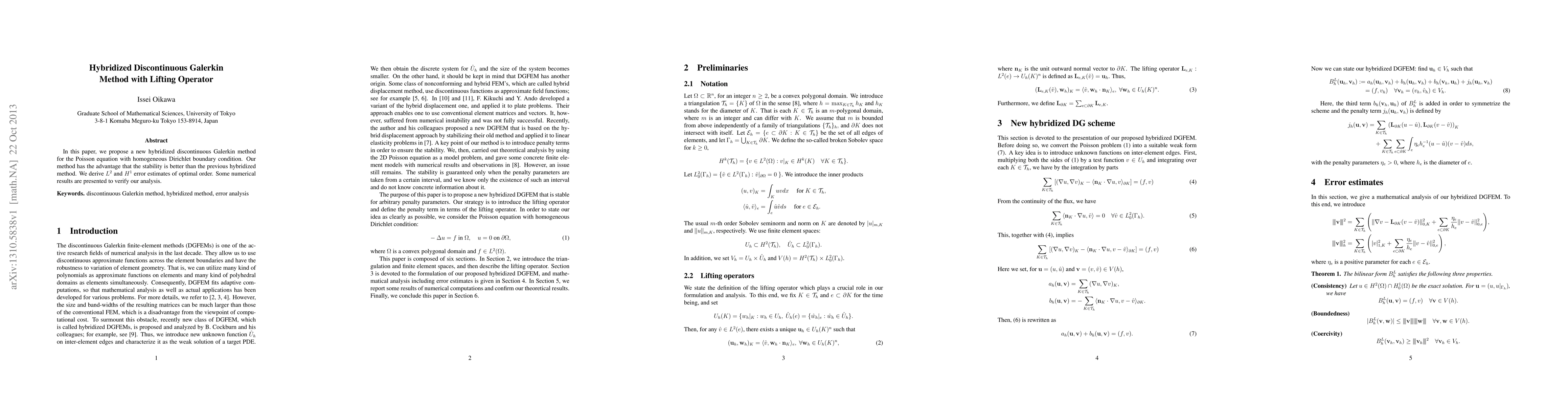 The paper introduces a hybridized discontinuous Galerkin method for the Poisson equation, demonstrating improved stability over previous methods and providing optimal order $L^2$ and $H^1$ error estimates, supported by numerical verification.