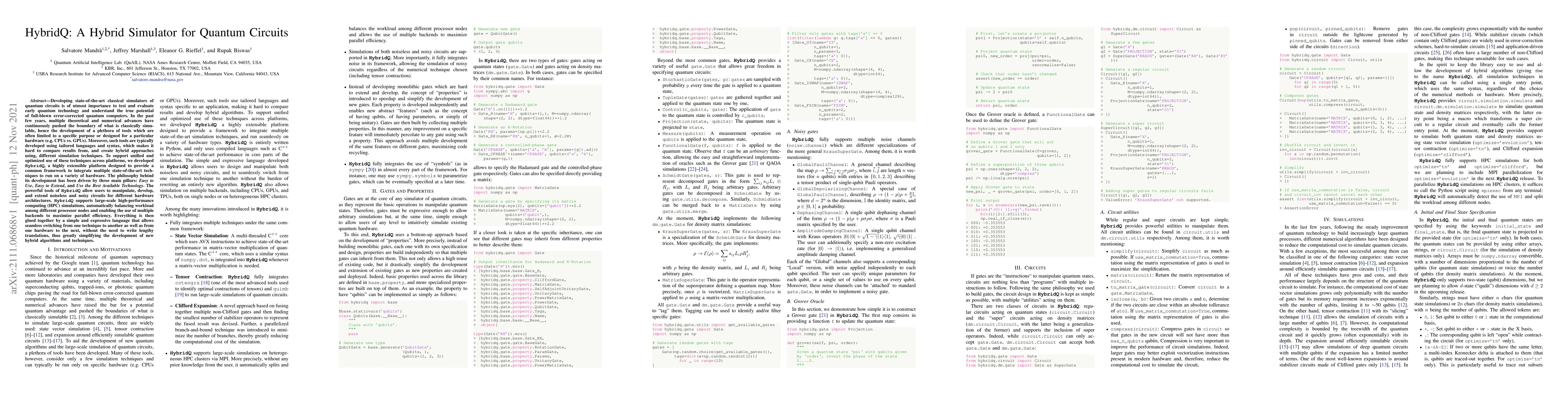 HybridQ is a versatile simulator for quantum circuits that integrates various advanced techniques, supporting diverse hardware and large-scale simulations. It simplifies development and comparison of hybrid algorithms with its user-friendly design and seamless hardware switching capabilities.