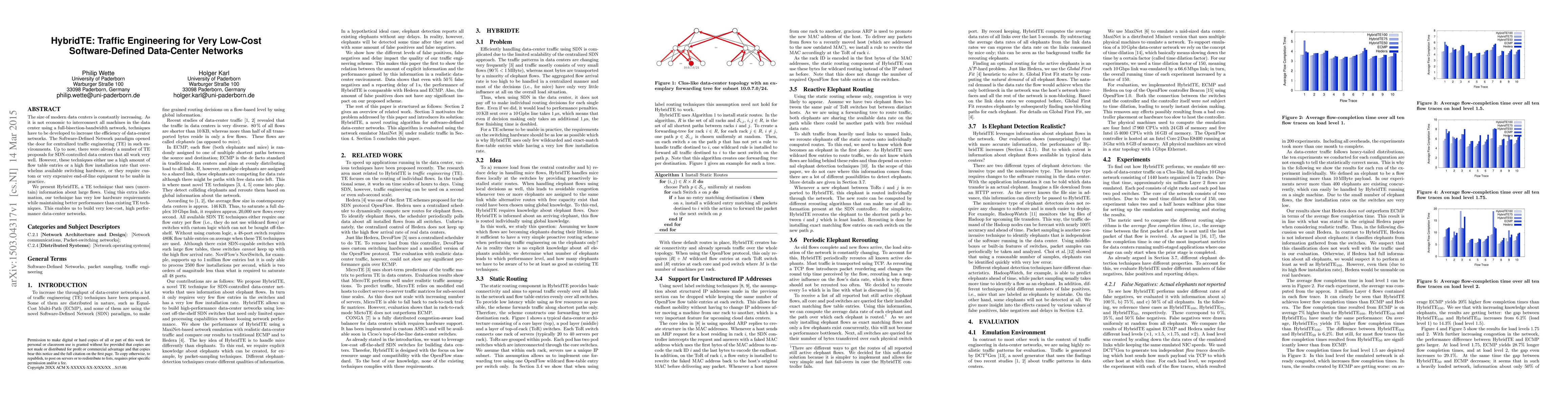 HybridTE introduces a traffic engineering technique for software-defined data-center networks that leverages uncertain information about large flows to achieve low hardware costs while outperforming existing methods. This approach enables the creation of cost-effective, high-performance data-center networks.