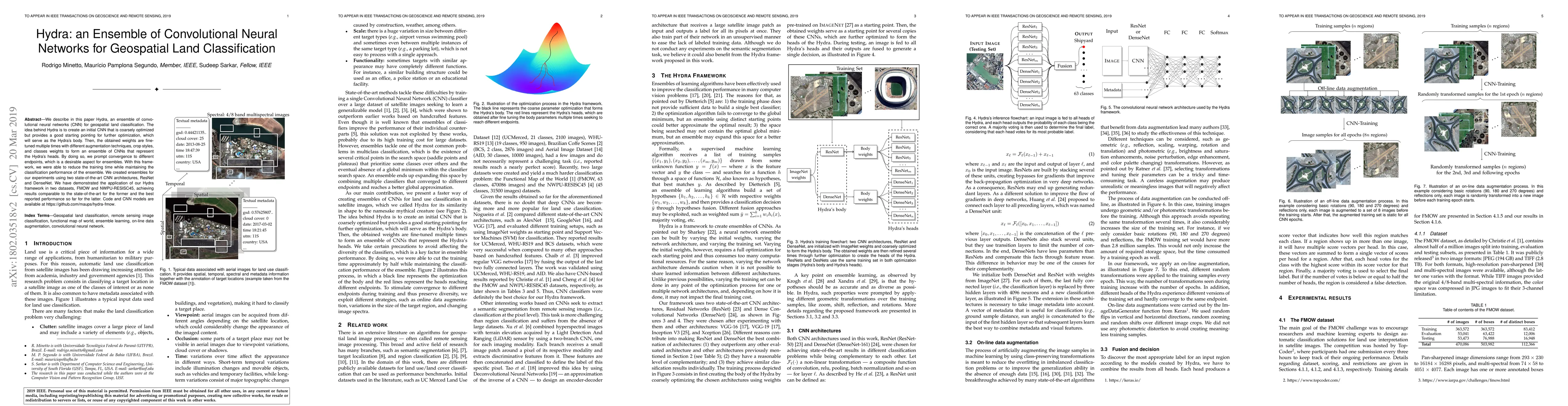 This research paper introduces Hydra, an ensemble of convolutional neural networks (CNNs) designed for geospatial land classification. The approach involves creating an initial coarsely optimized CNN, followed by fine-tuning with different augmentation techniques to form an ensemble, which enhances classification performance. Experiments using ResNet and DenseNet architectures on FMOW and NWPU-RESISC45 datasets show competitive results. The code and models are available for further exploration.