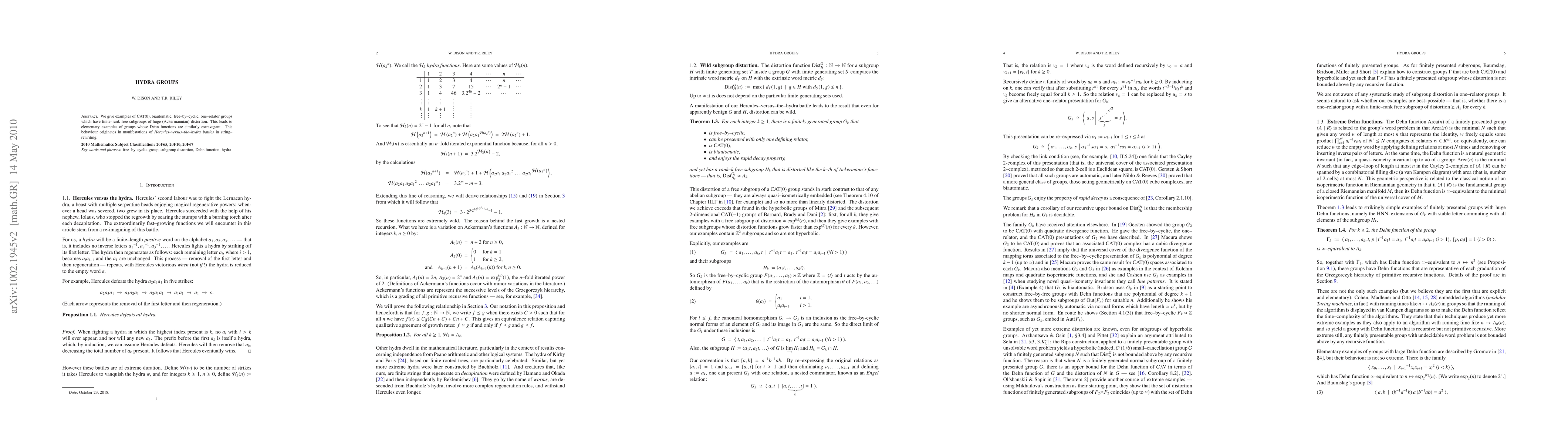 Researchers found groups with enormous distortion in finite-rank free subgroups, leading to extravagant Dehn functions. This phenomenon is linked to string-rewriting and Hercules-versus-the-hydra battles.