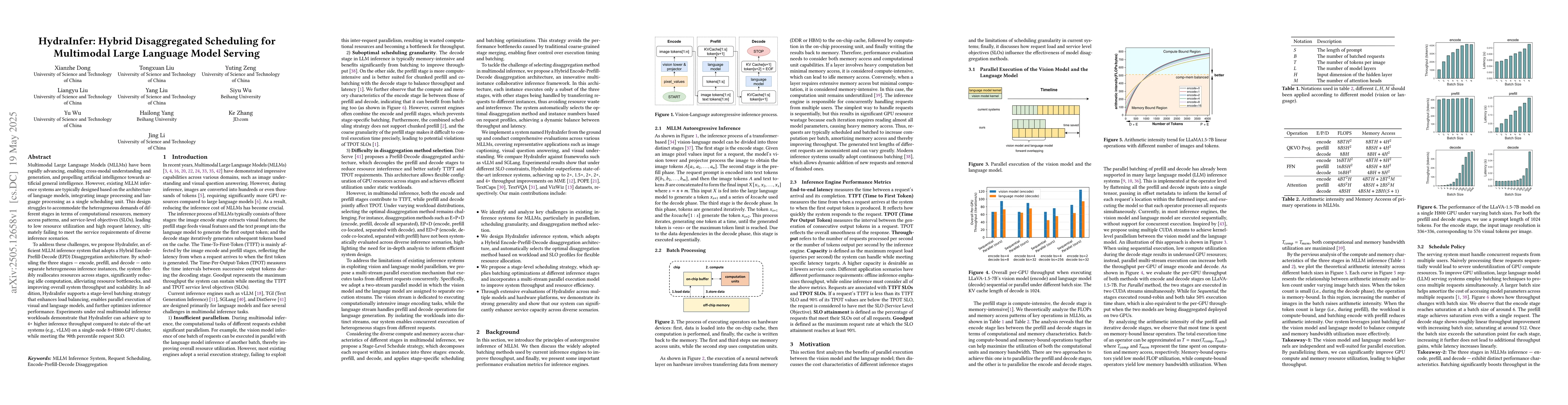 HydraInfer improves multimodal Large Language Model inference by disaggregating encode, prefill, and decode stages onto separate instances, reducing idle computation and improving throughput by up to 4x compared to state-of-the-art systems.