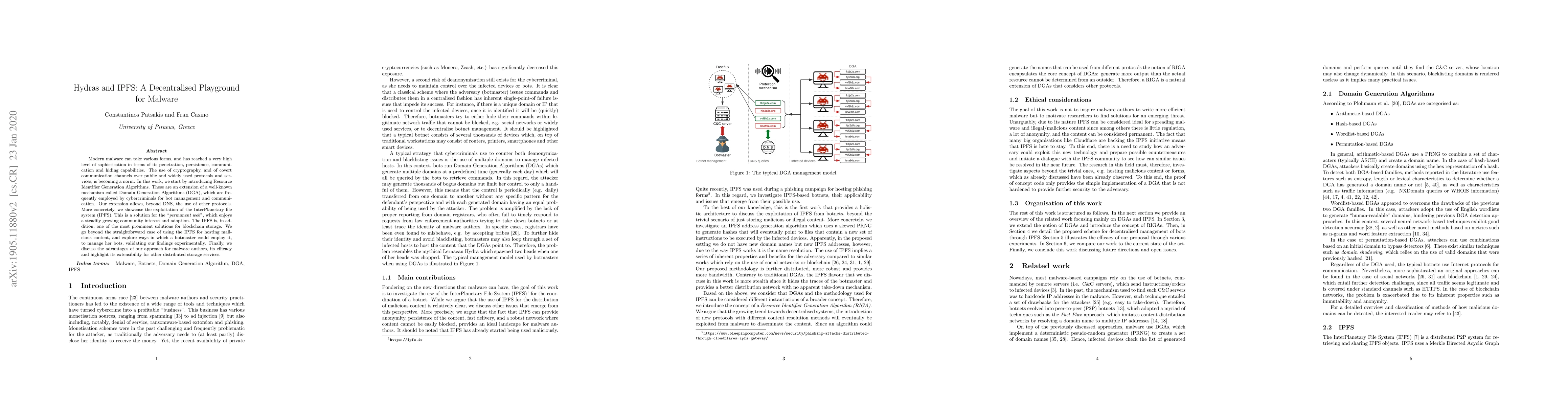 Modern malware can take various forms, and has reached a very high level of sophistication in terms of its penetration, persistence, communication and hiding capabilities. The use of cryptography, and of covert communication channels over public and widely used protocols and services, is becoming a norm. In this work, we start by introducing Resource Identifier Generation Algorithms. These are an extension of a well-known mechanism called Domain Generation Algorithms (DGA), which are frequently employed by cybercriminals for bot management and communication. Our extension allows, beyond DNS, the use of other protocols. More concretely, we showcase the exploitation of the InterPlanetary file system (IPFS). This is a solution for the "permanent web", which enjoys a steadily growing community interest and adoption. The IPFS is, in addition, one of the most prominent solutions for blockchain storage. We go beyond the straightforward case of using the IPFS for hosting malicious content, and explore ways in which a botmaster could employ it, to manage her bots, validating our findings experimentally. Finally, we discuss the advantages of our approach for malware authors, its efficacy and highlight its extensibility for other distributed storage services.