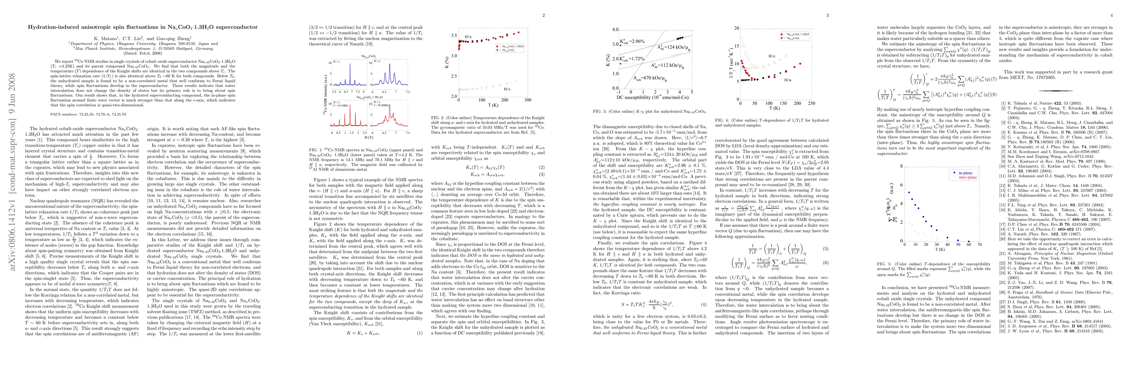 This study reveals that hydration in Na_{x}CoO_{2}\cdot1.3H_{2}O superconductor induces anisotropic spin fluctuations, with stronger in-plane fluctuations compared to the c-axis, indicating quasi-two-dimensional spin correlations, while not altering the density of states.