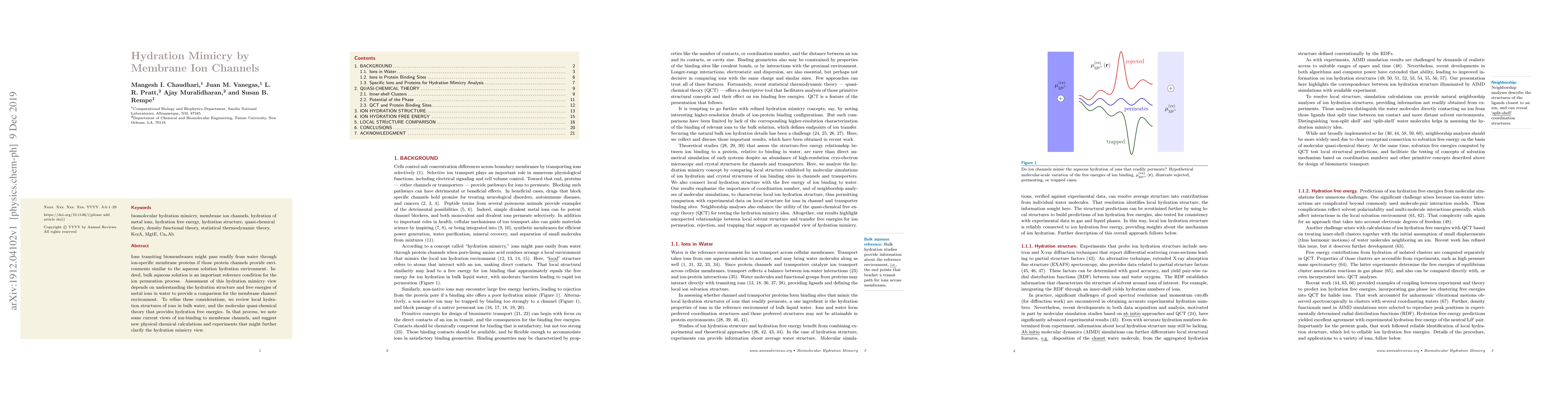 This paper explores how ion-specific membrane channels mimic the hydration environment of water to facilitate ion transit. It reviews the local hydration structures of metal ions in bulk water and suggests new calculations and experiments to better understand the hydration mimicry concept in membrane channels.