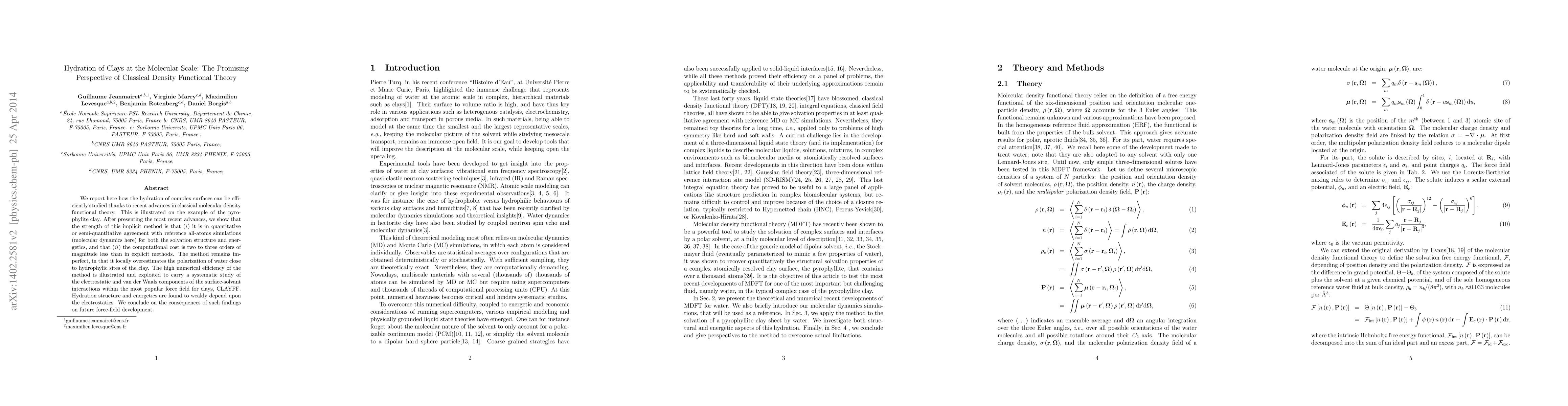 We report here how the hydration of complex surfaces can be efficiently studied thanks to recent advances in classical molecular density functional theory. This is illustrated on the example of the pyrophylite clay. After presenting the most recent advances, we show that the strength of this implicit method is that (i) it is in quantitative or semi-quantitative agreement with reference all-atoms simulations (molecular dynamics here) for both the solvation structure and energetics, and that (ii) the computational cost is two to three orders of magnitude less than in explicit methods. The method remains imperfect, in that it locally overestimates the polarization of water close to hydrophylic sites of the clay. The high numerical efficiency of the method is illustrated and exploited to carry a systematic study of the electrostatic and van der Waals components of the surface-solvant interactions within the most popular force field for clays, CLAYFF. Hydration structure and energetics are found to weakly depend upon the electrostatics. We conclude on the consequences of such findings in future force-field development.