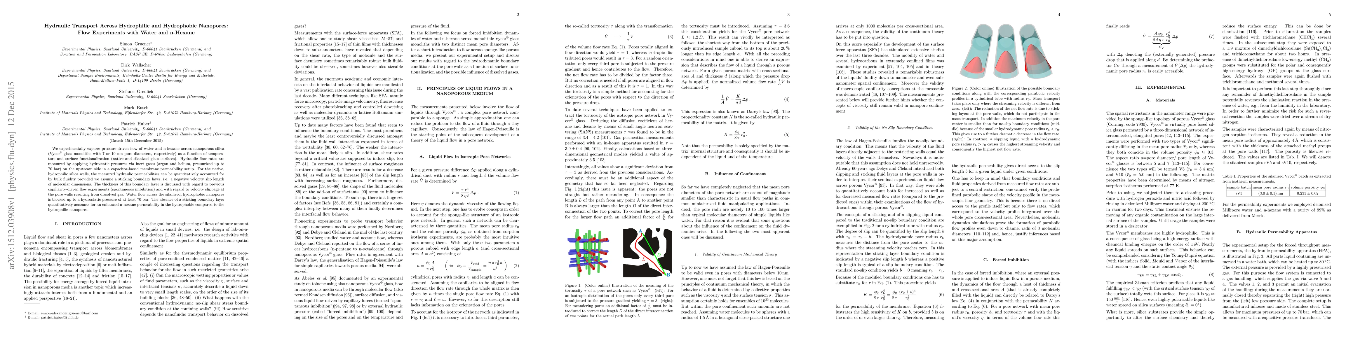 This study investigates pressure-driven hydraulic transport of water and n-hexane through nanoporous silica, showing that native hydrophilic pores exhibit a sticking boundary layer while silanized hydrophobic pores completely block water flow even at high pressures. Enhanced n-hexane permeability in hydrophobic pores contrasts with this behavior.
