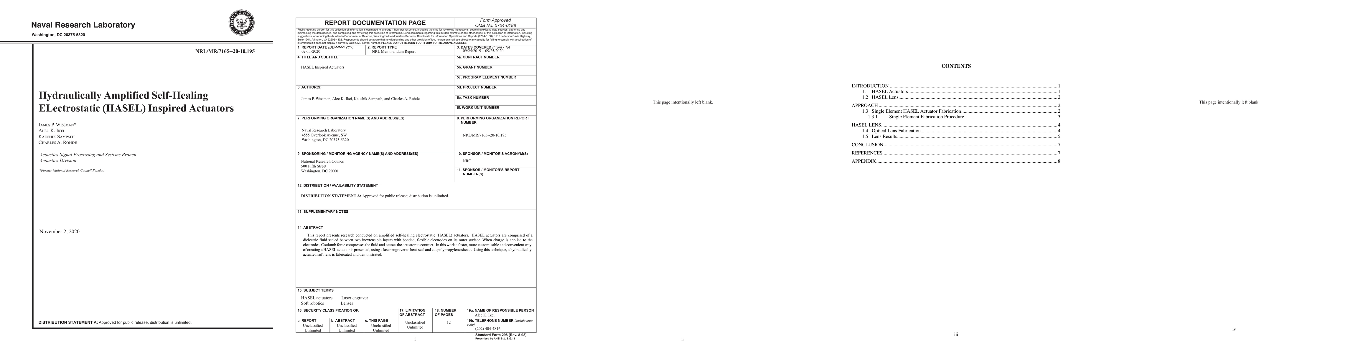 This report presents research conducted on amplified self-healing electrostatic (HASEL) actuators. HASEL actuators are comprised of a dielectric fluid sealed between two inextensible layers with bonded, flexible electrodes on its outer surface. When charge is applied to the electrodes, Coulomb force compresses the fluid and causes the actuator to contract. In this work a faster, more customizable and convenient way of creating a HASEL actuator is presented, using a laser engraver to heat-seal and cut polypropylene sheets. Using this technique, a hydraulically actuated soft lens is fabricated and demonstrated.