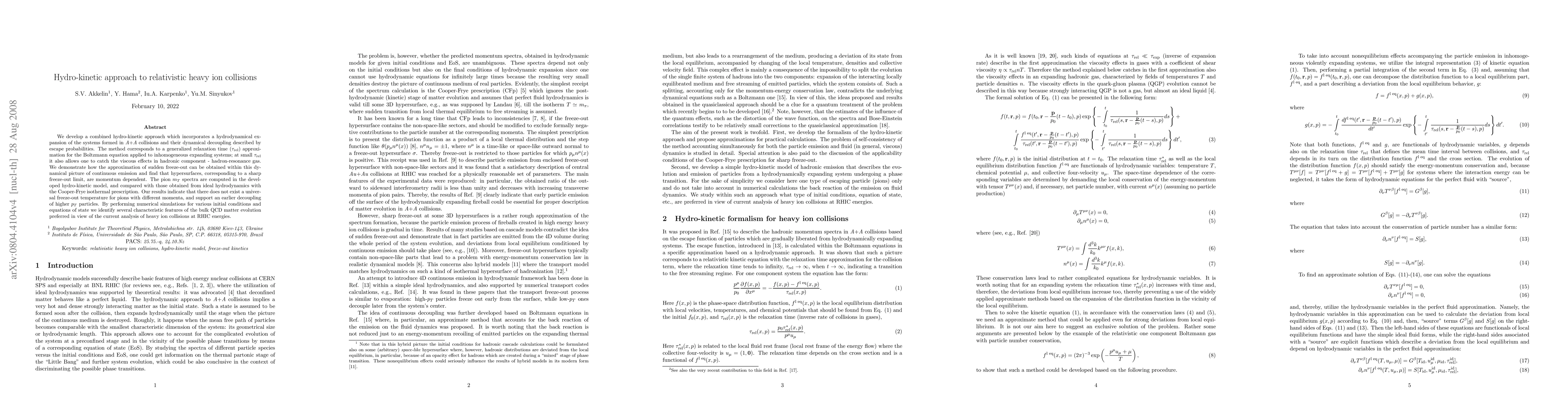 This paper develops a hydro-kinetic approach to model relativistic heavy ion collisions, combining hydrodynamic expansion with kinetic decoupling via escape probabilities. It finds that freeze-out temperatures vary with pion momentum, indicating earlier decoupling for higher $p_{T}$ particles.
