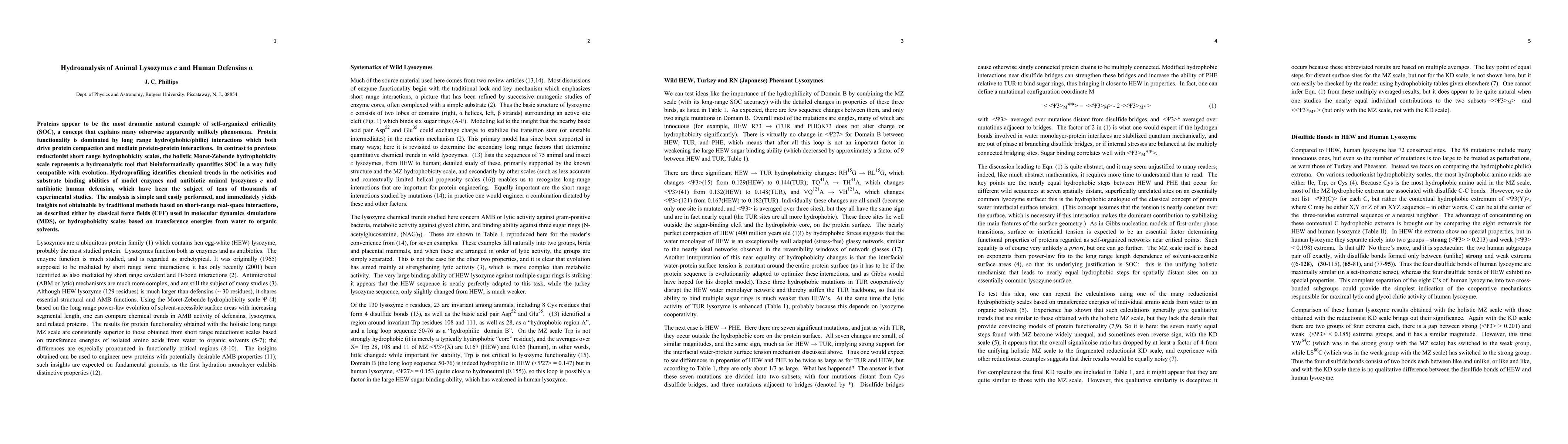 Proteins appear to be the most dramatic natural example of self-organized criticality (SOC), a concept that explains many otherwise apparently unlikely phenomena. Protein functionality is dominated by long range hydro(phobic/philic) interactions which both drive protein compaction and mediate protein-protein interactions. In contrast to previous reductionist short range hydrophobicity scales, the holistic Moret-Zebende hydrophobicity scale represents a hydroanalytic tool that bioinformatically quantifies SOC in a way fully compatible with evolution. Hydroprofiling identifies chemical trends in the activities and substrate binding abilities of model enzymes and antibiotic animal lysozymes c and antibiotic human defensins, which have been the subject of tens of thousands of experimental studies. The analysis is simple and easily performed, and immediately yields insights not obtainable by traditional methods based on short-range real-space interactions, as described either by classical force fields (CFF) used in molecular dynamics simulations (MDS), or hydrophobicity scales based on transference energies from water to organic solvents.