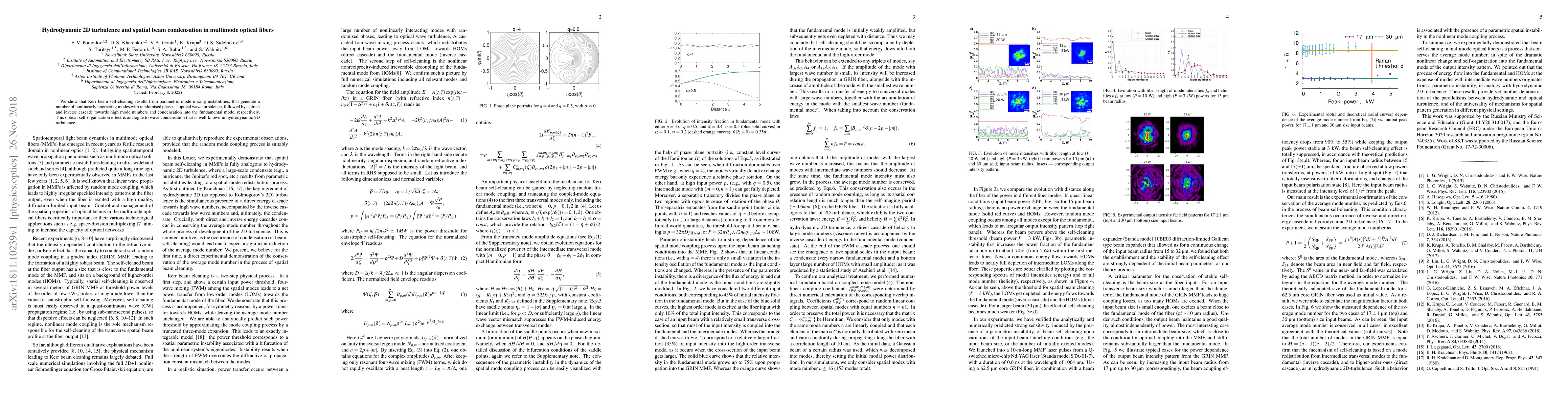 We show that Kerr beam self-cleaning results from parametric mode mixing instabilities, that generate a number of nonlinearly interacting modes with randomized phases -- optical wave turbulence, followed by a direct and inverse cascade towards high mode numbers and condensation into the fundamental mode, respectively. This optical self-organization effect is analogue to wave condensation that is well-known in hydrodynamic 2D turbulence.