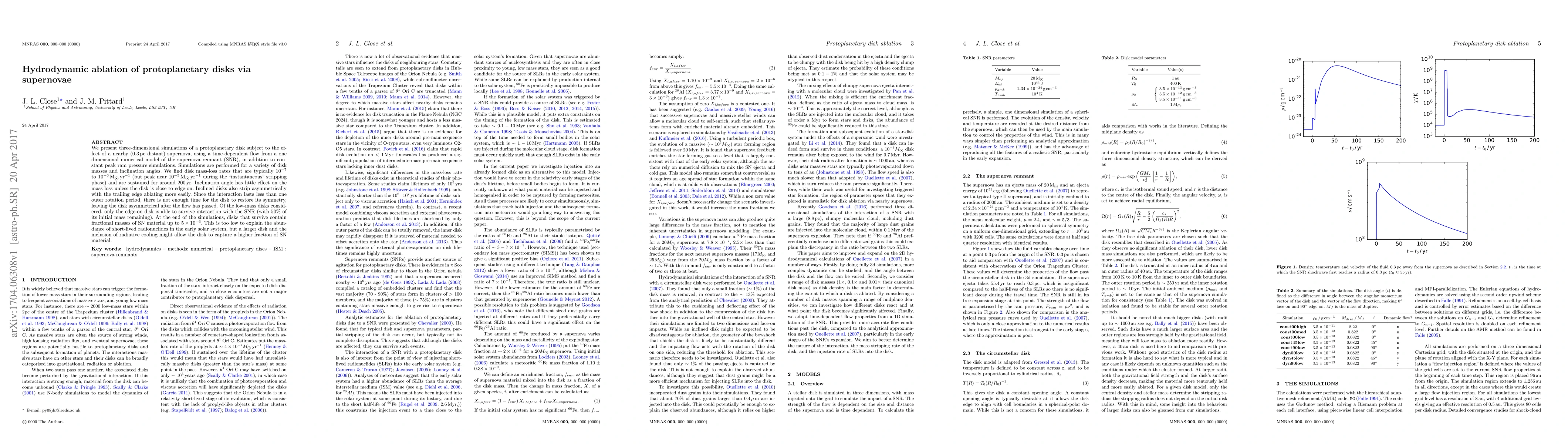 We present three-dimensional simulations of a protoplanetary disk subject to the effect of a nearby (0.3pc distant) supernova, using a time-dependent flow from a one dimensional numerical model of the supernova remnant (SNR), in addition to constant peak ram pressure simulations. Simulations are performed for a variety of disk masses and inclination angles. We find disk mass-loss rates that are typically 1e-7 to 1e-6 Msol/yr (but peak near 1e-5 Msol/yr during the "instantaneous" stripping phase) and are sustained for around 200 yr. Inclination angle has little effect on the mass loss unless the disk is close to edge-on. Inclined disks also strip asymmetrically with the trailing edge ablating more easily. Since the interaction lasts less than one outer rotation period, there is not enough time for the disk to restore its symmetry, leaving the disk asymmetrical after the flow has passed. Of the low-mass disks considered, only the edge-on disk is able to survive interaction with the SNR (with 50% of its initial mass remaining). At the end of the simulations, disks that survive contain fractional masses of SN material up to 5e-6. This is too low to explain the abundance of short-lived radionuclides in the early solar system, but a larger disk and the inclusion of radiative cooling might allow the disk to capture a higher fraction of SN material.