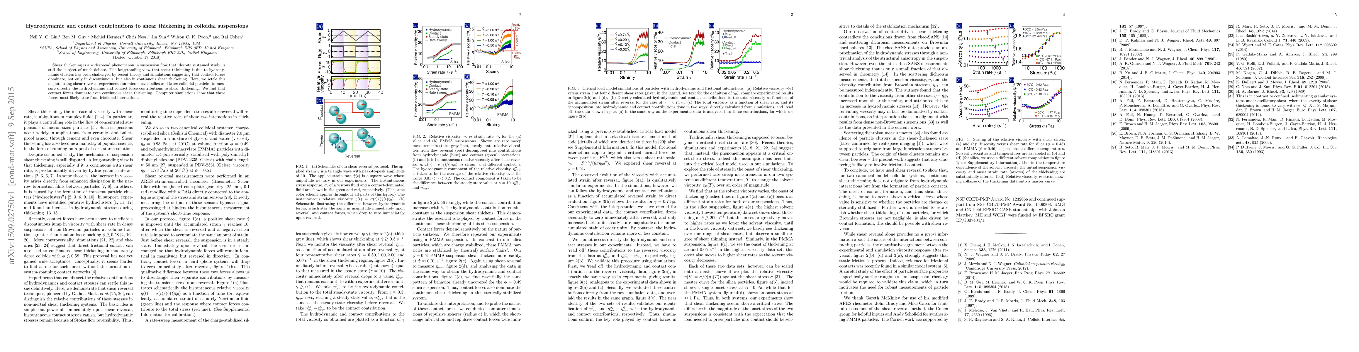 Shear thickening is a widespread phenomenon in suspension flow that, despite sustained study, is still the subject of much debate. The longstanding view that shear thickening is due to hydrodynamic clusters has been challenged by recent theory and simulations suggesting that contact forces dominate, not only in discontinuous, but also in continuous shear thickening. Here, we settle this dispute using shear reversal experiments on micron-sized silica and latex colloidal particles to measure directly the hydrodynamic and contact force contributions to shear thickening. We find that contact forces dominate even continuous shear thickening. Computer simulations show that these forces most likely arise from frictional interactions.