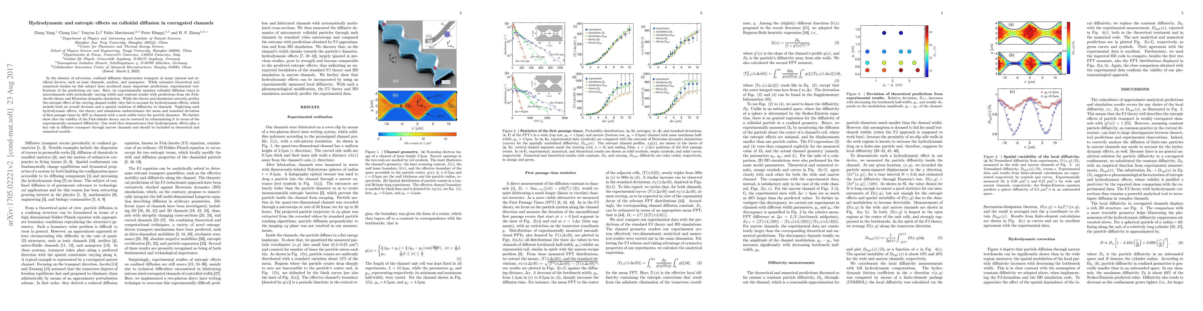 This study experimentally measures colloidal diffusion in microchannels with varying widths, revealing that hydrodynamic effects significantly impact diffusion times, which are not captured by existing theories. The Fick-Jacobs theory and simulations underestimate diffusion by 40% due to neglecting these effects, highlighting the need for their inclusion in future models.