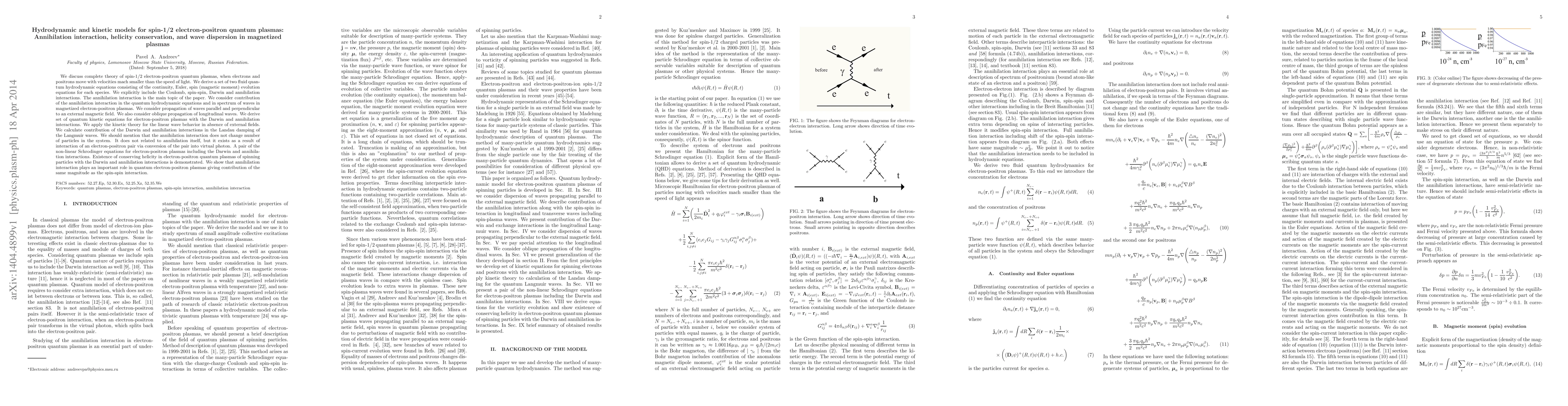 The paper presents a detailed set of quantum hydrodynamic and kinetic equations for spin-1/2 electron-positron quantum plasmas, including annihilation interactions, and analyzes their impact on wave dispersion and damping in magnetized plasmas.