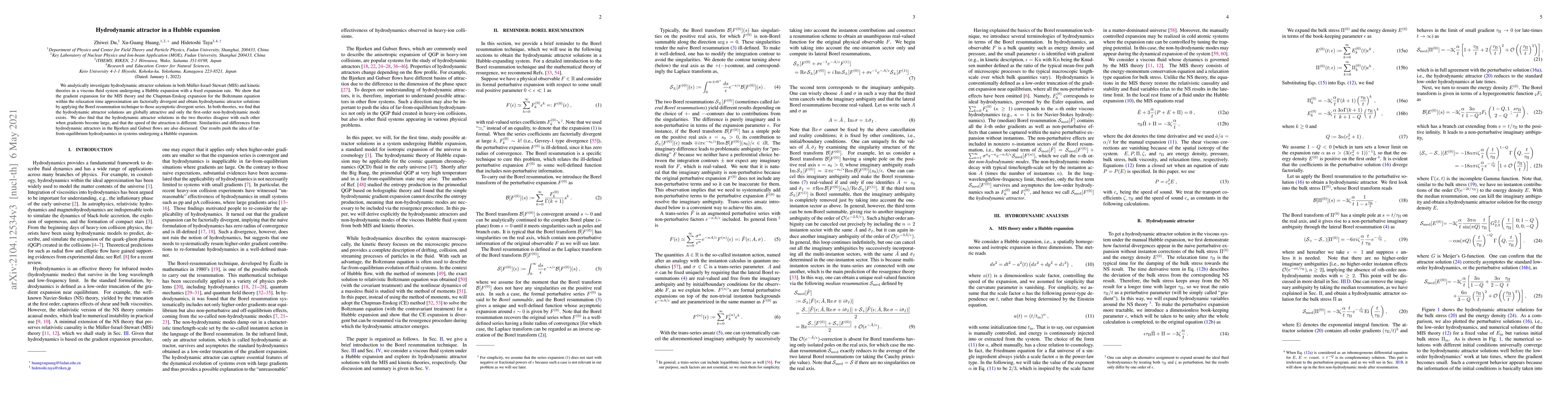 This paper analytically investigates hydrodynamic attractor solutions in viscous fluid systems under Hubble expansion, showing that both MIS and kinetic theories converge to attractors via Borel resummation. The study reveals differences in the speed of attraction and the presence of first-order non-hydrodynamic modes, with implications for far-from-equilibrium hydrodynamics.
