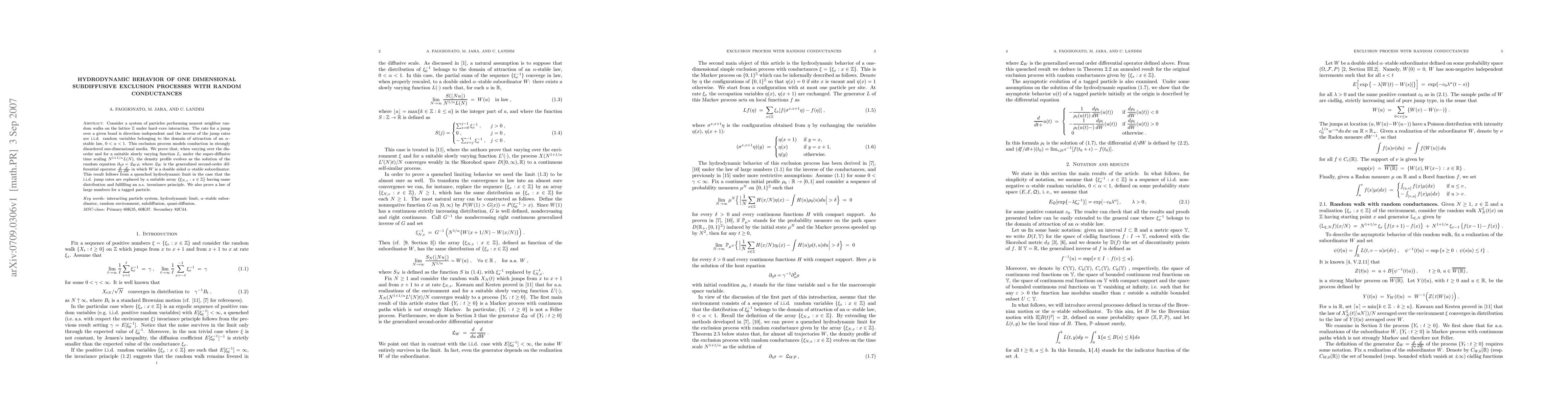 A study on a one-dimensional exclusion process with random conductances shows that its hydrodynamic behavior can be described as the solution of a random equation involving a generalized second-order differential operator. The findings have implications for understanding conduction in disordered media.