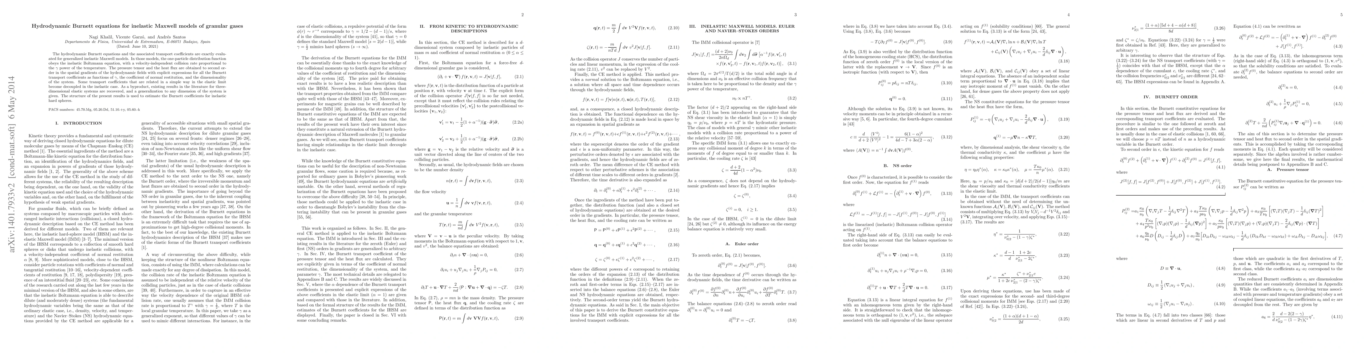 This paper evaluates the hydrodynamic Burnett equations for inelastic Maxwell models of granular gases, deriving explicit expressions for transport coefficients as functions of the coefficient of normal restitution and dimensionality. It shows decoupling of certain transport coefficients in the inelastic case compared to the elastic limit, and generalizes existing three-dimensional results to any dimension.