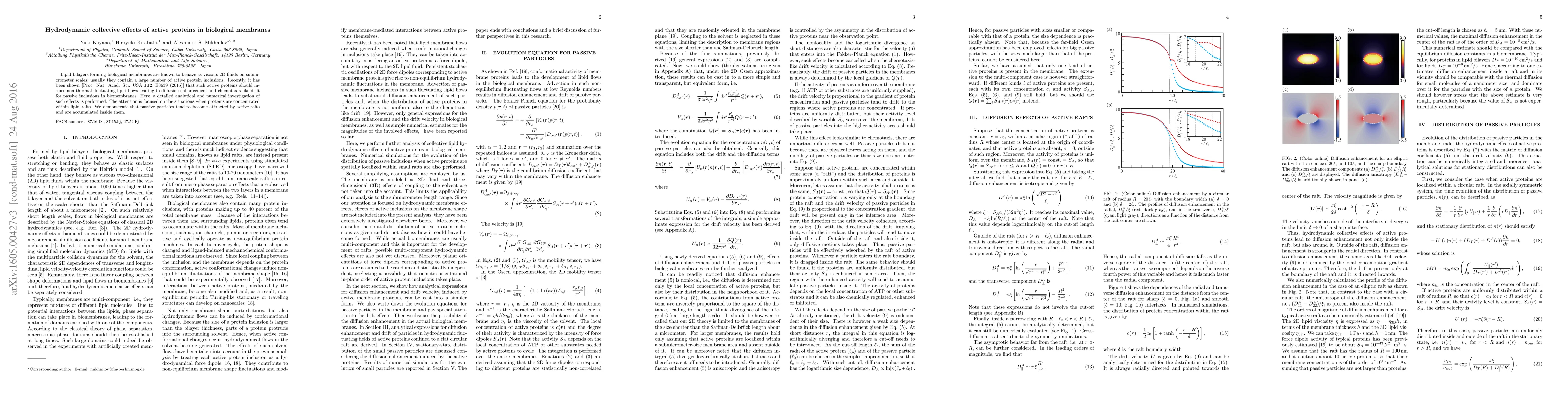 This paper investigates the hydrodynamic effects of active proteins within lipid rafts in biological membranes, showing that these proteins induce lipid flows that enhance diffusion and attract passive particles, leading to accumulation inside the rafts. Analytical and numerical methods reveal the chemotaxis-like drift behavior of passive inclusions due to active protein concentration.
