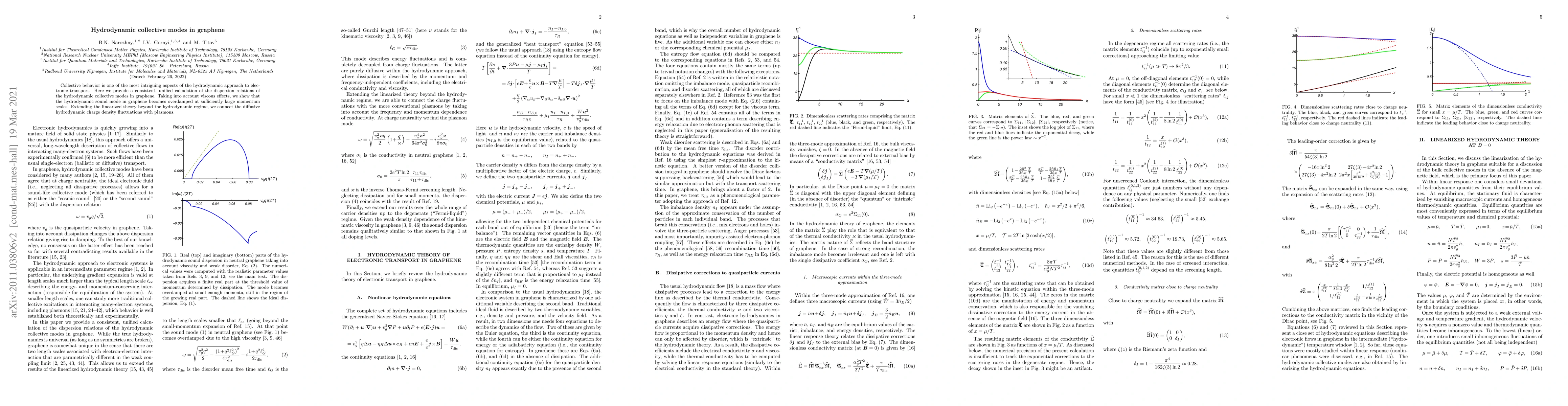 This paper presents a unified analysis of hydrodynamic collective modes in graphene, showing that viscous effects cause the hydrodynamic sound mode to become overdamped at large momentum scales. It also extends the theory to connect diffusive charge density fluctuations with plasmons.