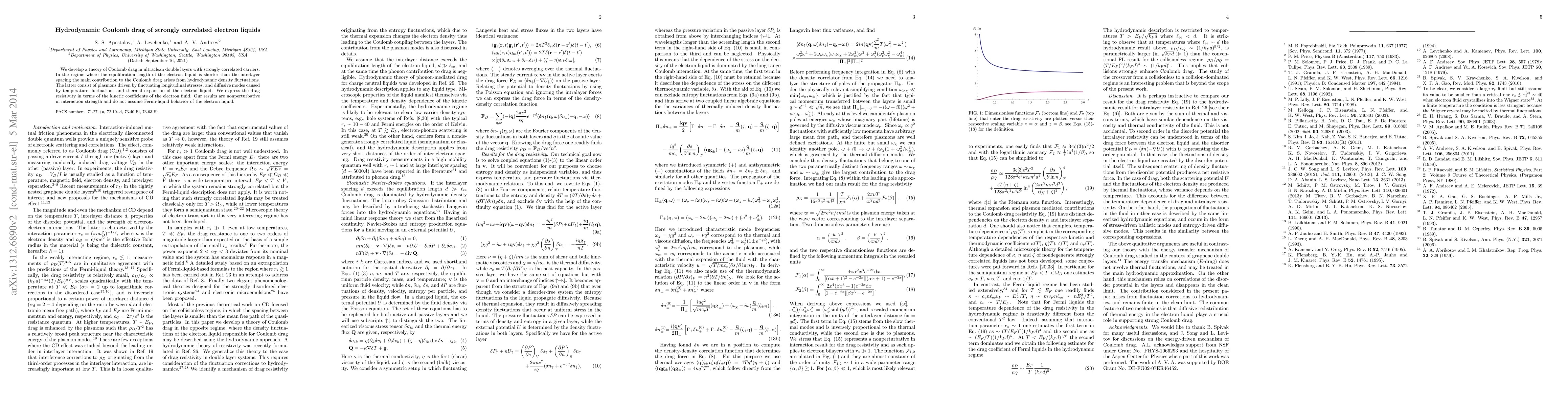 This paper develops a theory of Coulomb drag in ultraclean double layers with strongly correlated electron liquids, showing that hydrodynamic density fluctuations, including plasmons and diffusive modes, dominate the drag in certain conditions. The drag resistivity is expressed in terms of kinetic coefficients, with results valid for all interaction strengths and not relying on Fermi-liquid assumptions.