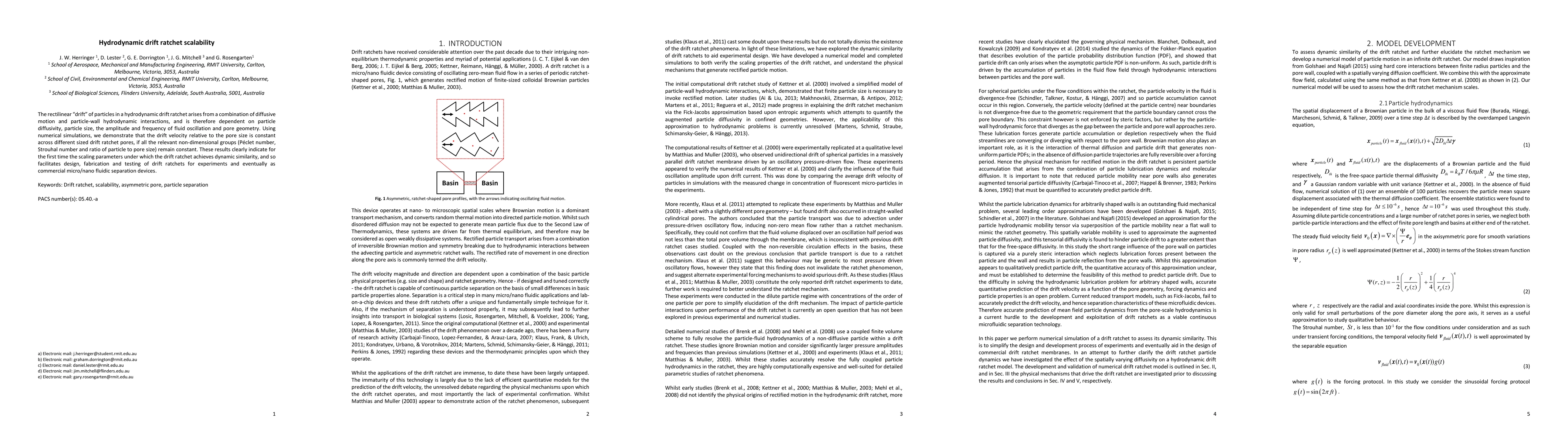This research reveals that in hydrodynamic drift ratchets, drift velocity relative to pore size stays constant when certain non-dimensional groups are consistent. This discovery provides scaling parameters for designing and testing micro/nano fluidic separation devices.