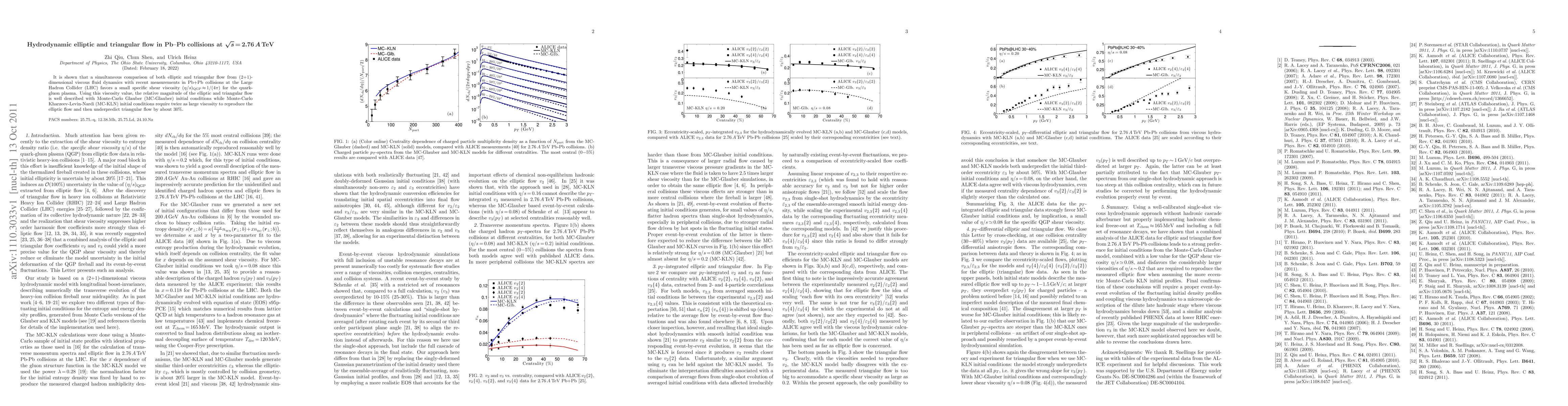 This paper compares elliptic and triangular flow in Pb-Pb collisions at 2.76 TeV, finding that a small specific shear viscosity (η/s) ≈ 1/(4π) for the quark-gluon plasma best fits measurements. The study shows that MC-Glauber initial conditions align well with these observations, while MC-KLN requires a larger viscosity and underpredicts triangular flow by 30%.