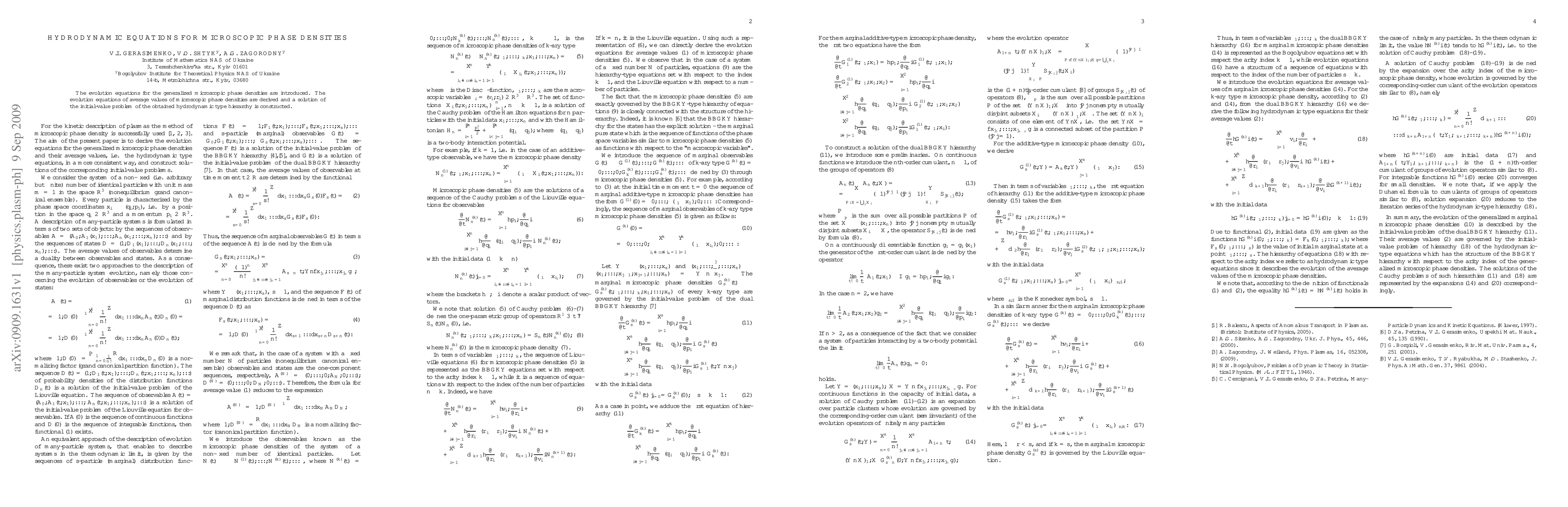 This paper introduces the evolution equations for generalized microscopic phase densities and derives the equations governing the average values of these densities. It also constructs a solution for the initial-value problem of the resulting hydrodynamic type hierarchy.